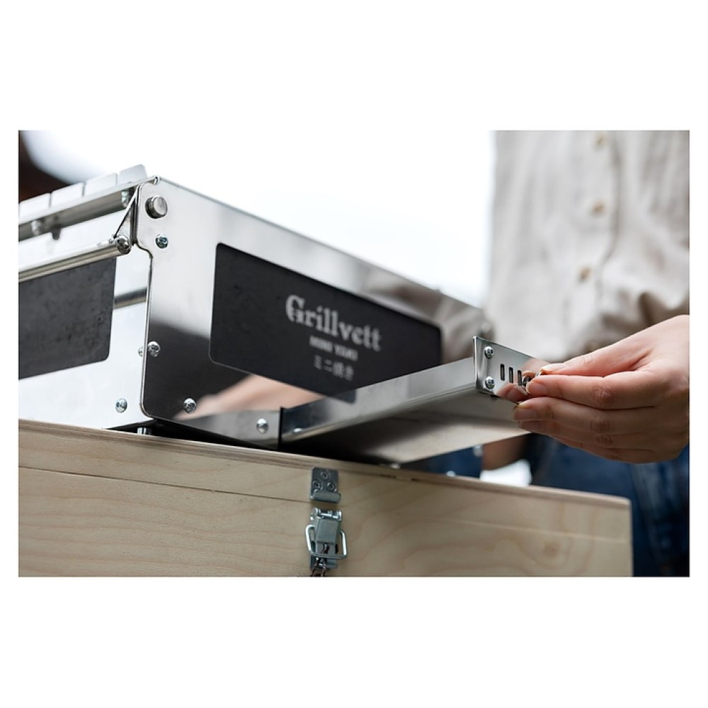 Угольный гриль-мангал GRILLVETT MINI YAKI предназначен для приготовления мяса, рыбы, овощей и других продуктов с использованием углей на предприятиях общественного питания и торговли, в частных домах, в походах, на охоте и рыбалке. Модель оснащена шиберной заслонкой, позволяющей регулировать температуру, и выдвижным сборником для золы, обеспечивающим простую и удобную очистку гриля. Корпус выполнен из жаростойкой нержавеющей стали и шамотной плиты.