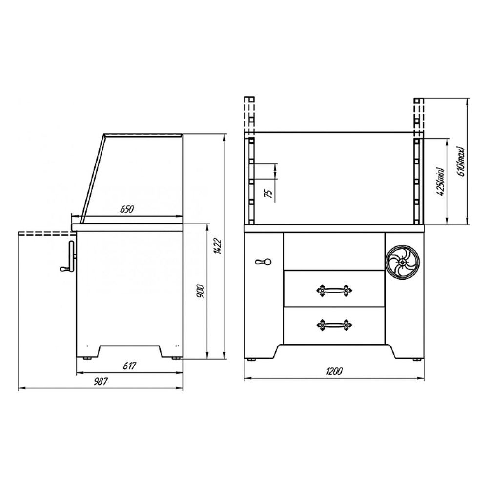 Внимание! Общие габариты мангала указаны без полки для гастроемкостей.