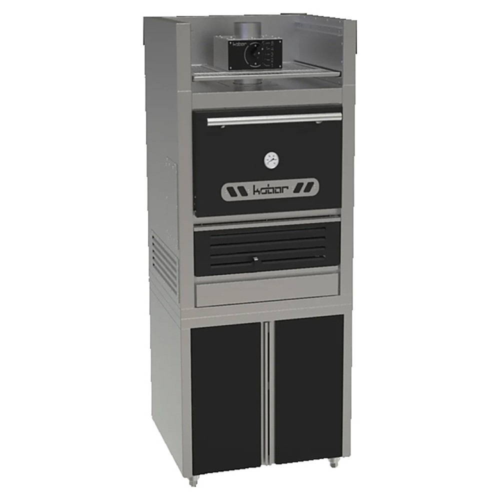 Печь-мангал Кобор FIRE-25-L BC предназначена для приготовления блюд на углях на предприятиях общественного питания. Модель оснащена подставкой и полкой для подогрева. Корпус выполнен из нержавеющей стали AISI430, камера и колосниковая решетка - из жаростойкой котловой стали толщиной 5 мм, дверь и некоторые элементы имеют черное полимерное покрытие.