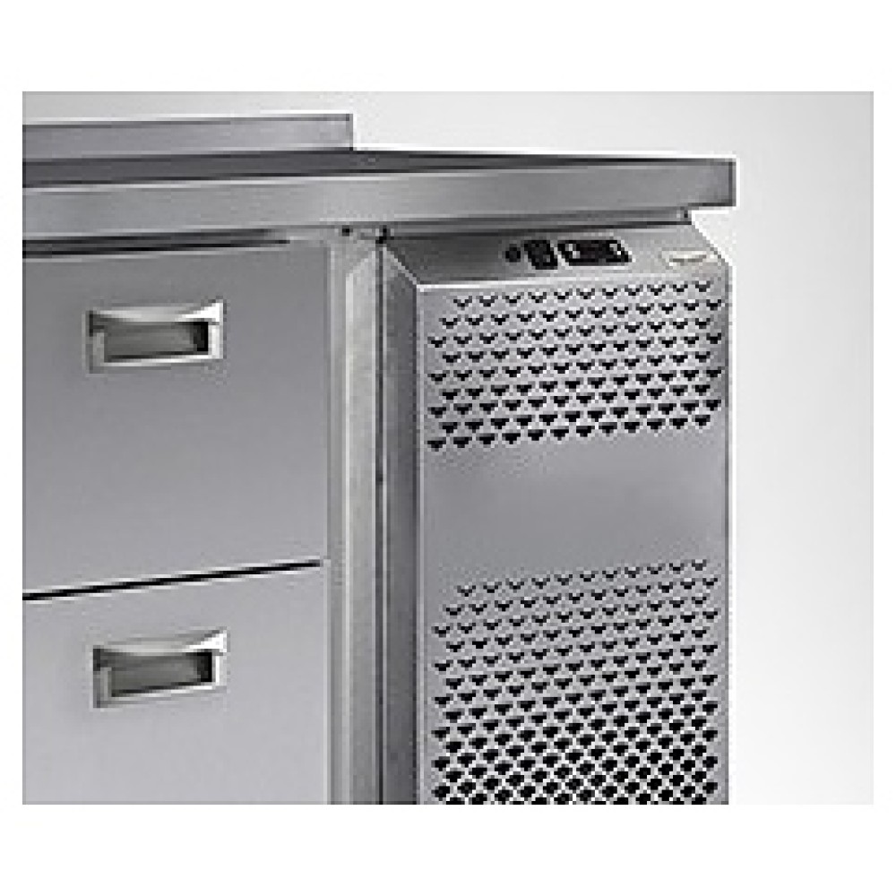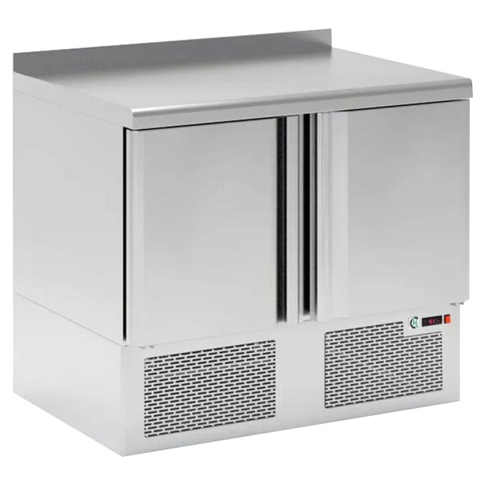 Холодильный стол LARK SNE 11/TN используется на предприятиях общественного питания и торговли для кратковременного хранения предварительно охлажденных мясных и рыбных продуктов и полуфабрикатов, а также для раскатывания теста и обработки ингредиентов на рабочей поверхности. Цельнозаливной корпус обеспечивает высокую герметичность и жёсткость конструкции. Модель оснащена 2 распашными дверцами, расположенным снизу агрегатным отсеком, столешницей и регулируемыми по высоте ножками. Корпус и столешница выполнены из нержавеющей стали.