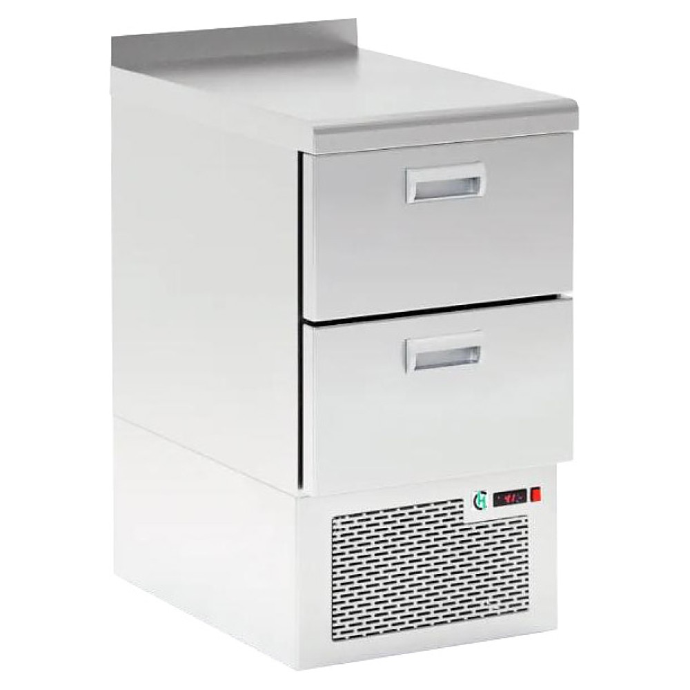 Холодильный стол LARK SNE 2/TN используется на предприятиях общественного питания и торговли для кратковременного хранения предварительно охлажденных мясных и рыбных продуктов и полуфабрикатов, а также для раскатывания теста и обработки ингредиентов на рабочей поверхности. Цельнозаливной корпус обеспечивает высокую герметичность и жёсткость конструкции. Модель оснащена 2 ящиками, расположенным снизу агрегатным отсеком, столешницей с бортом и регулируемыми по высоте ножками. Корпус и столешница выполнены из нержавеющей стали.