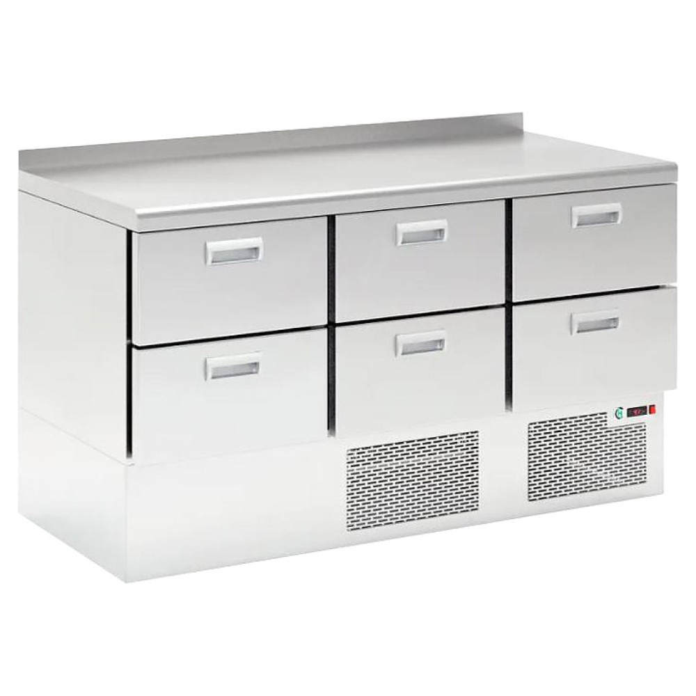 Морозильный стол LARK SNE 222/BT используется на предприятиях общественного питания и торговли для хранения и заморозки мясных и рыбных продуктов, полуфабрикатов, а также для раскатывания теста и обработки ингредиентов на рабочей поверхности. Цельнозаливной корпус обеспечивает высокую герметичность и жёсткость конструкции. Модель оснащена 6 ящиками, расположенным снизу агрегатным отсеком и столешницей с бортом. Корпус и столешница выполнены из нержавеющей стали.