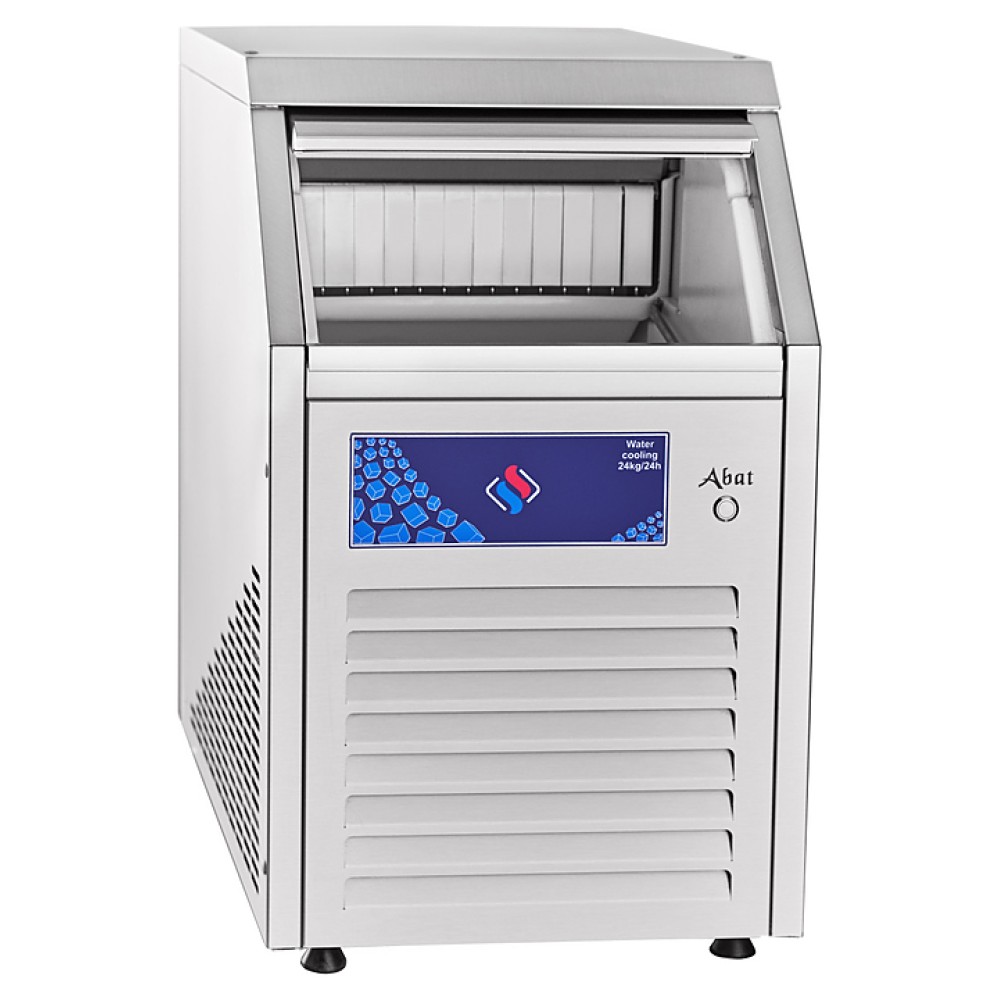 Льдогенератор Abat ЛГ-24/06К-01 предназначен для производства кубикового льда на предприятиях общественного питания и торговли. Модель оснащена отодвигающейся вовнутрь дверцей, системой автоматического отключения в случае отсутствия подачи воды на охлаждение конденсатора, утечки хладагента, повышенной нагрузки на мотор-редуктор и переполнения бункера льдом и регулируемыми по высоте ножками.