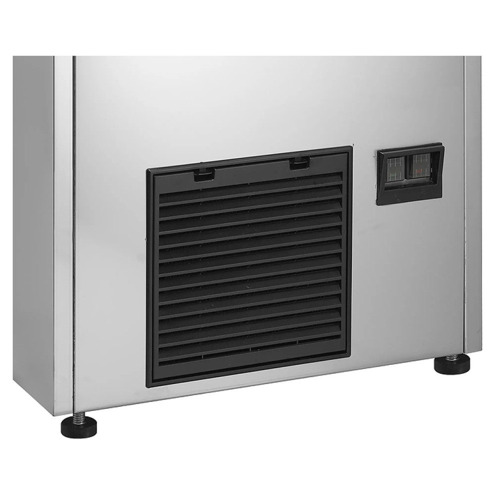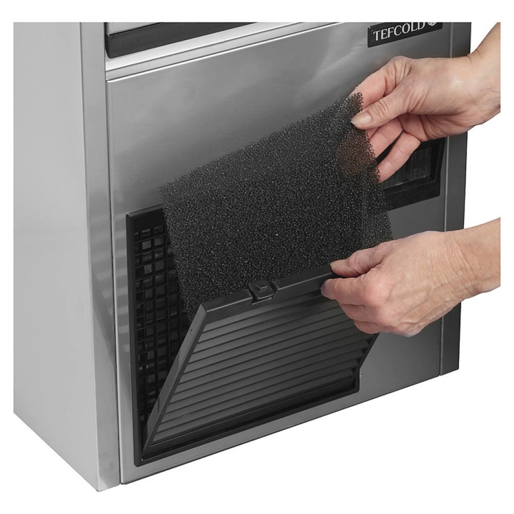 Автоматический льдогенератор TEFCOLD TC85 предназначен для приготовления кубикового льда, используемого для охлаждения различных напитков на предприятиях общественного питания и торговли. Модель оснащена компрессорным агрегатом, фронтально расположенным бункером с откидной дверцей и панелью управления. Корпус выполнен из высококачественной нержавеющей стали марки SS304.