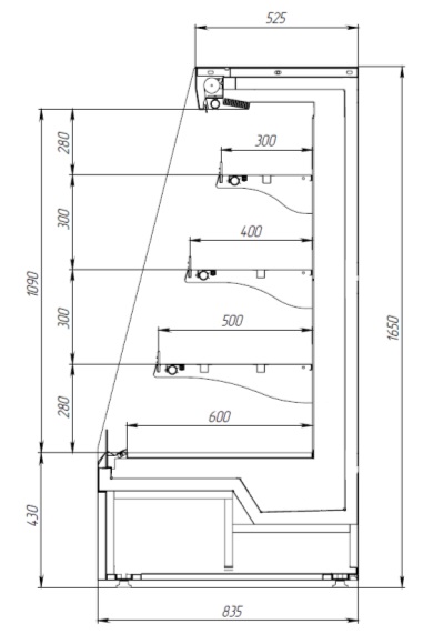 | Высота1650 мм | Глубина835 мм | Ширина2500 мм |
