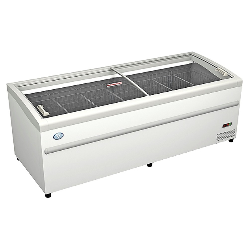 Система автоматической оттайки горячим газом облегчает процесс ухода за оборудованием. Теплоизоляционная стенка толщиной 80 мм и применяемые современные энергосберегающие технологии значительно снижают хладопотери, тем самым позволяя уменьшая энергопотребление. Ларь оснащен раздвижными стеклянными крышками с напылением против запотевания. Встроенная подсветка внутреннего объема устройства гарантирует оптимальный обзор размещенных внутри продуктов.