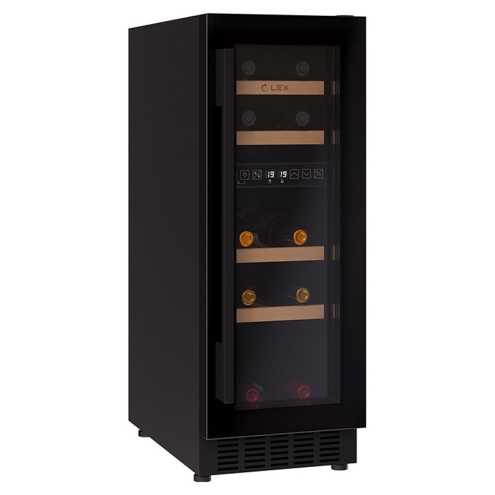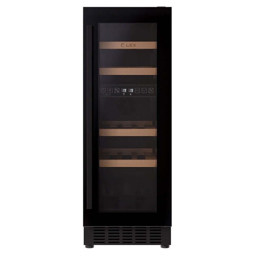 Винный шкаф Lex LWD3017BL dual zone предназначен для хранения при оптимальных условиях бутилированного вина различных сортов в барах, ресторанах, специализированных магазинах, подсобных складских помещениях, а также домашних условиях. Модель оснащена холодильной камерой c 2 температурными зонами, интегрированными направляющими для полок, правосторонней распашной дверью на перенавешиваемых петлях с длинной уплощенной вертикальной рукояткой и обзорным остеклением, цокольной вентиляционной решеткой, кабелем питания, расположенной внутри камеры электронной панелью управления с сенсорными функциональными клавишами и 2 цифровыми светодиодными дисплеями с белой подсветкой индикации. Корпус выполнен из металла с антикоррозийным покрытием, дверь с полным фронтальным остеклением без винтового крепежа, рама двери и внутренняя облицовка камеры черного цвета, рукоятка – из металла с матовым покрытием черного цвета, остекление – из закаленного стекла с дымчатой тонировкой, полки – из массива буковой древесины с фронтальной гравировкой логатипа.