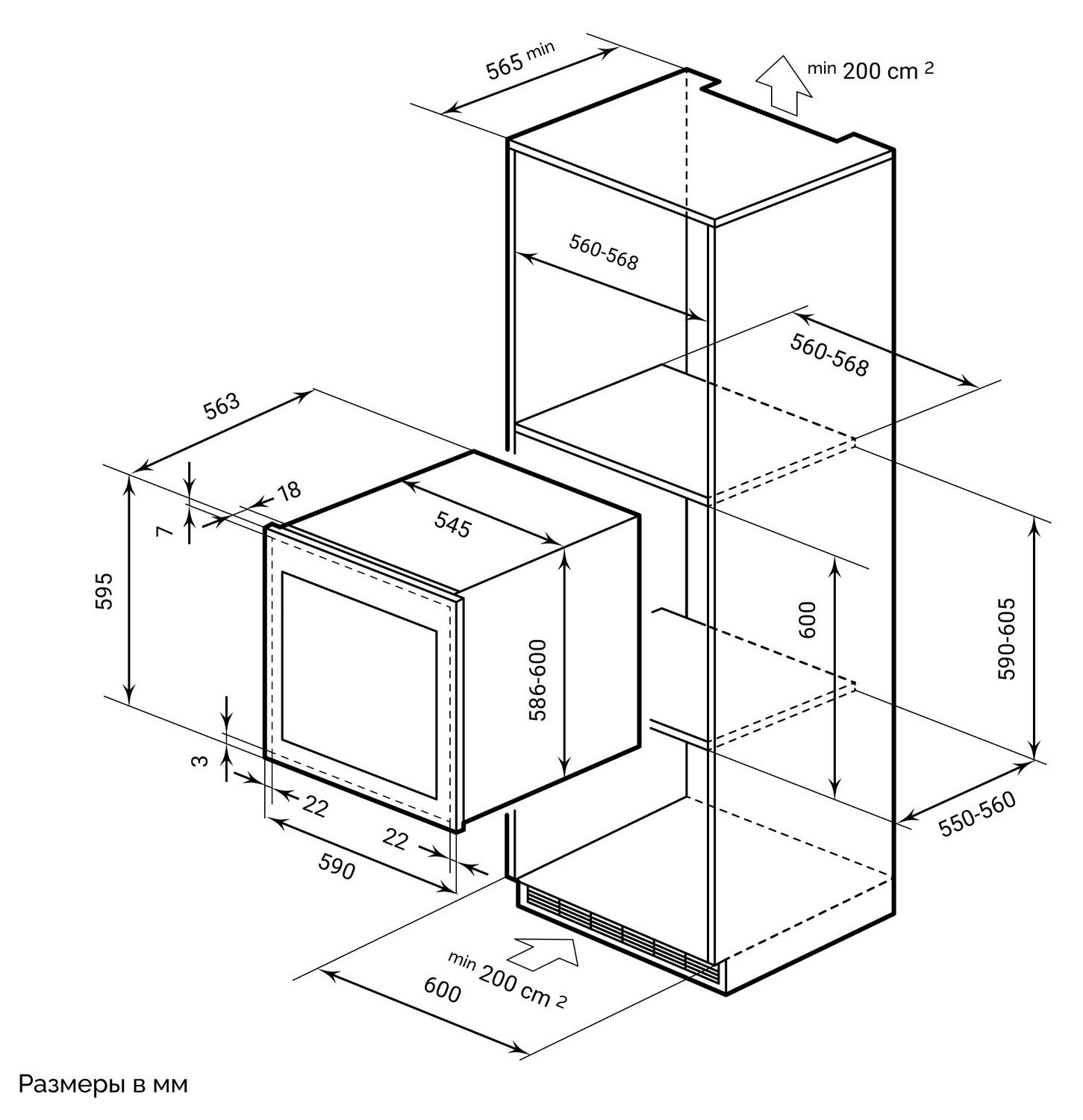 | Высота595 мм | Глубина563 мм | Ширина590 мм |