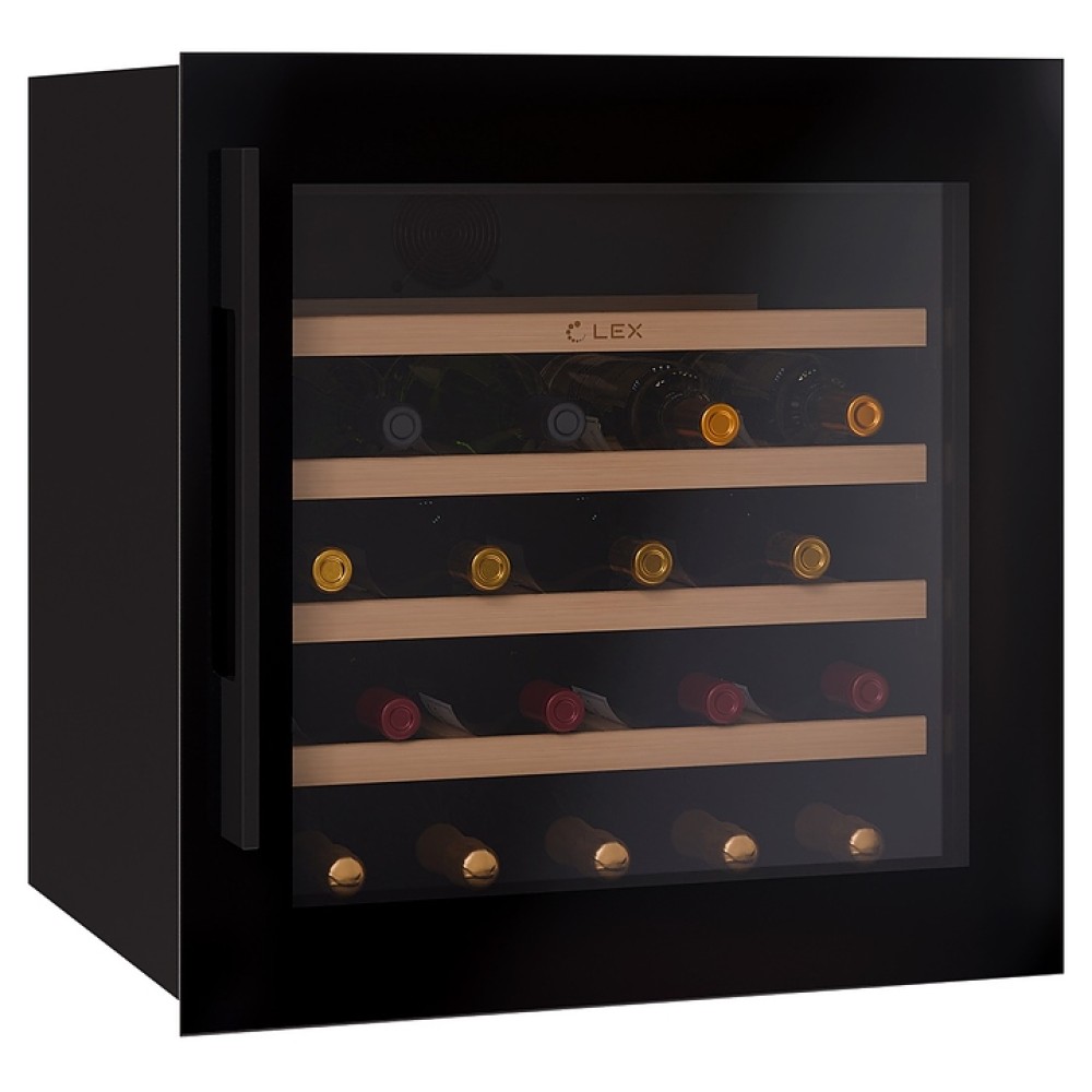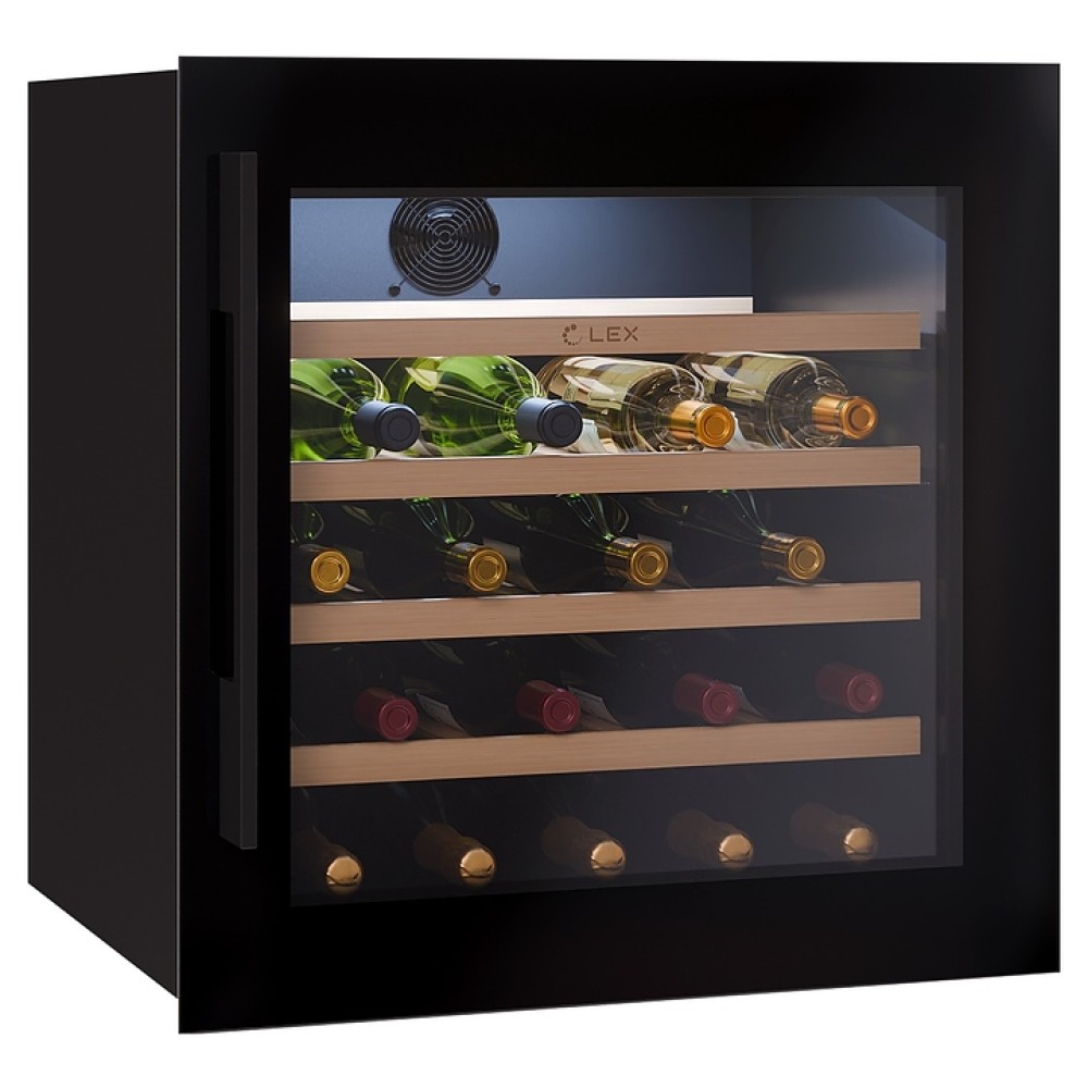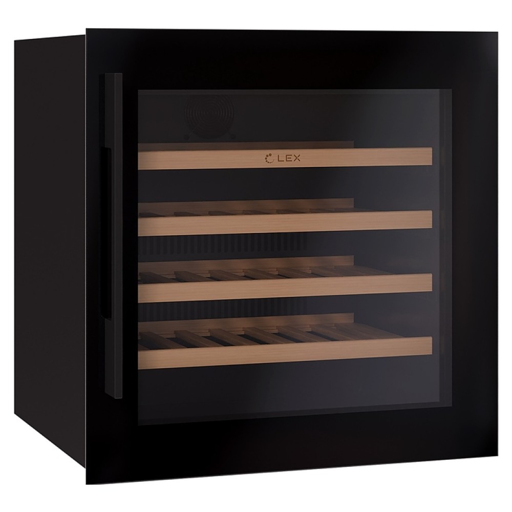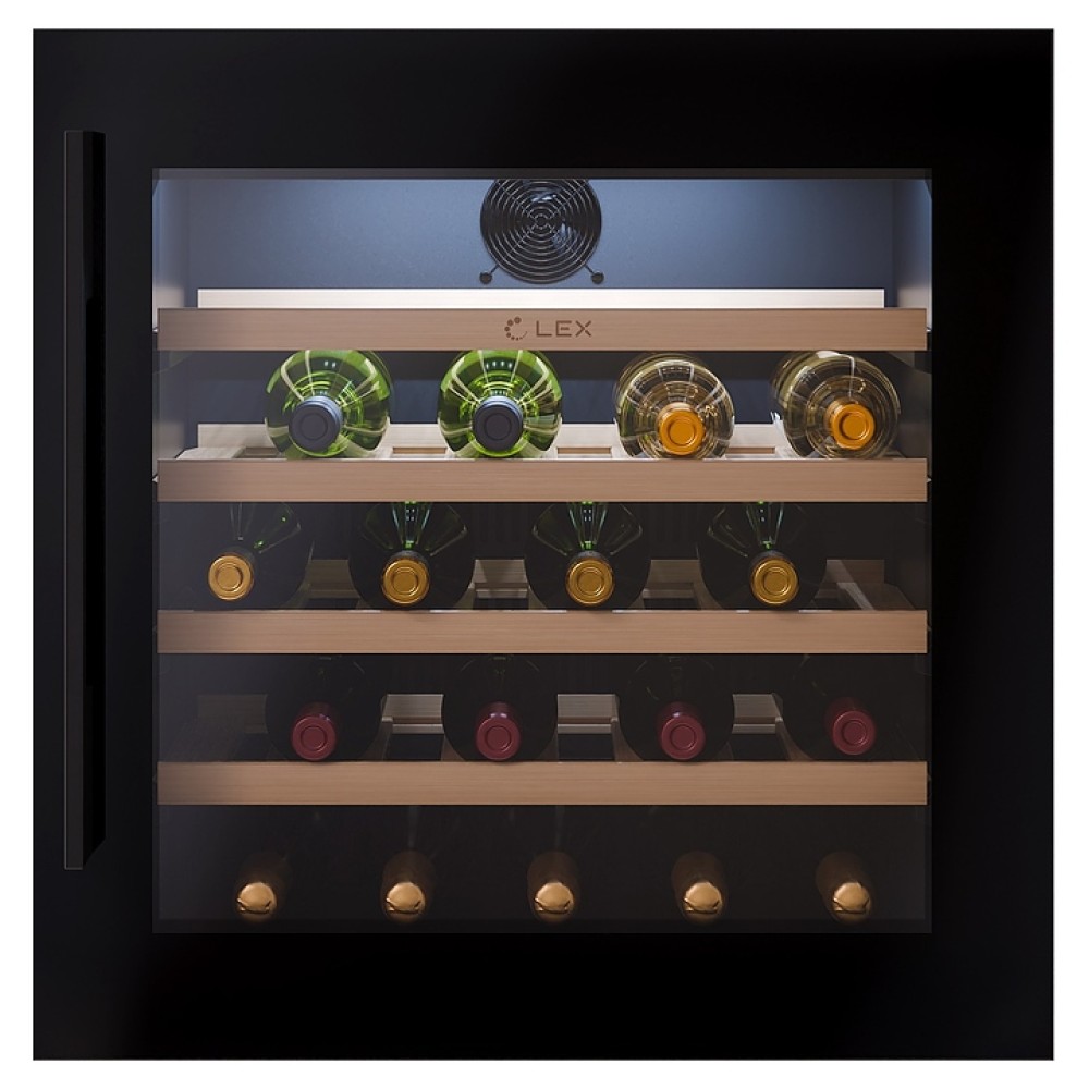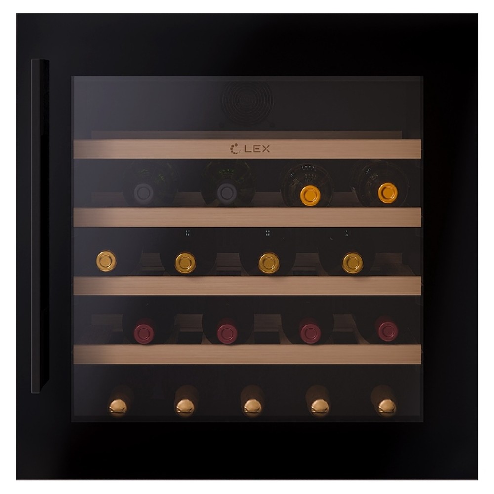 Винный шкаф Lex LWD6036BL предназначен для хранения при оптимальных условиях бутилированного вина различных сортов в барах, ресторанах, специализированных магазинах, подсобных складских помещениях, а также домашних условиях. Модель оснащена монотемпературной холодильной камерой с интегрированными направляющими для полок, правосторонней распашной дверью на перенавешиваемых петлях с длинной уплощенной вертикальной рукояткой и обзорным остеклением, кабелем питания, расположенной внутри камеры электронной панелью управления с сенсорными функциональными клавишами и 2 цифровыми светодиодными дисплеями с белой подсветкой индикации. Корпус выполнен из металла с антикоррозийным покрытием, дверь с полным фронтальным остеклением без винтового крепежа, рама двери и внутренняя облицовка камеры черного цвета, рукоятка – из металла с матовым покрытием черного цвета, остекление – из закаленного стекла с дымчатой тонировкой, полки – из массива буковой древесины с фронтальной гравировкой логатипа.