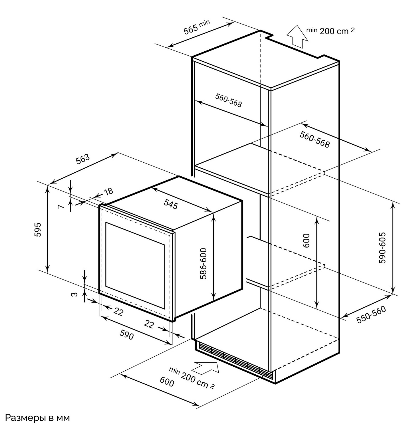 | Высота595 мм | Глубина563 мм | Ширина590 мм |
