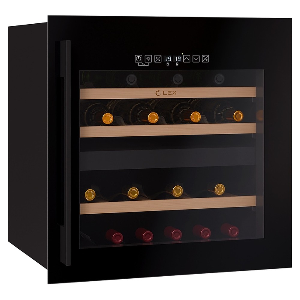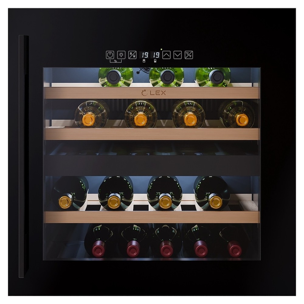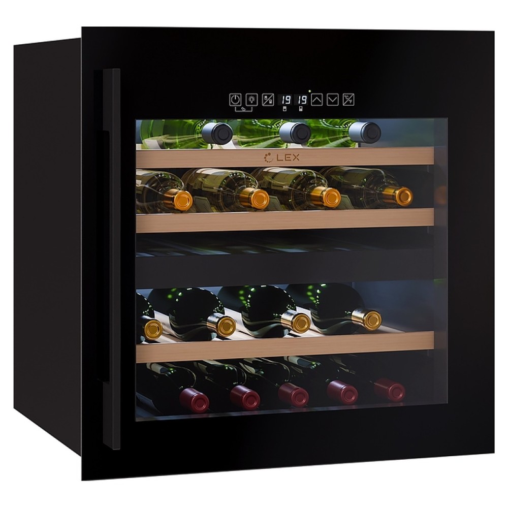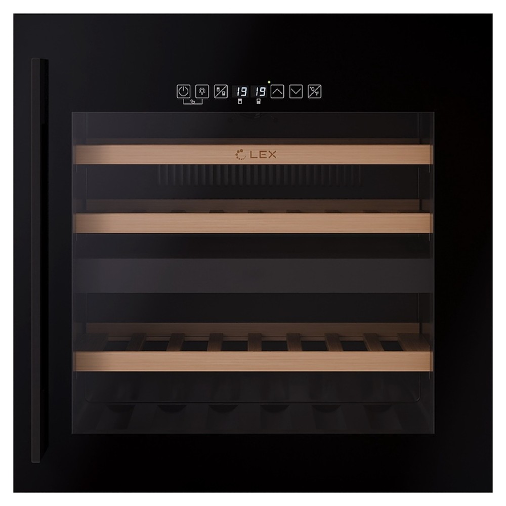 Винный шкаф Lex LWD6036BL dual zone S предназначен для хранения при оптимальных условиях бутилированного вина различных сортов в барах, ресторанах, специализированных магазинах, подсобных складских помещениях, а также домашних условиях. Модель оснащена холодильной камерой c 2 температурными зонами, интегрированными направляющими для полок, правосторонней распашной дверью на перенавешиваемых петлях с длинной уплощенной вертикальной рукояткой и обзорным остеклением, кабелем питания, расположенной на фасаде двери электронной панелью управления с сенсорными функциональными клавишами и 2 цифровыми светодиодными дисплеями с белой подсветкой индикации. Корпус выполнен из металла с антикоррозийным покрытием, дверь с полным фронтальным остеклением без винтового крепежа, рама двери и внутренняя облицовка камеры черного цвета, рукоятка – из металла с матовым покрытием черного цвета, остекление – из закаленного стекла с дымчатой тонировкой, полки – из массива буковой древесины с фронтальной гравировкой логатипа.