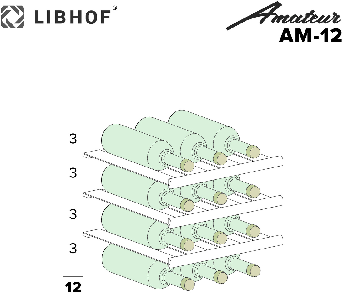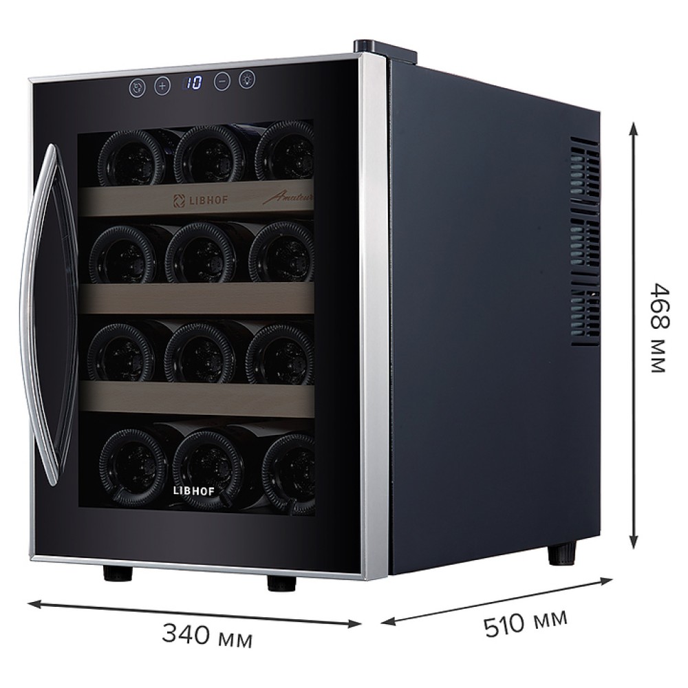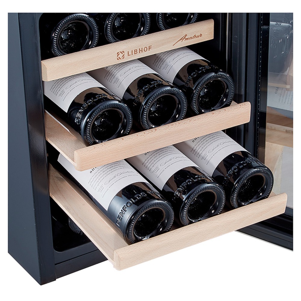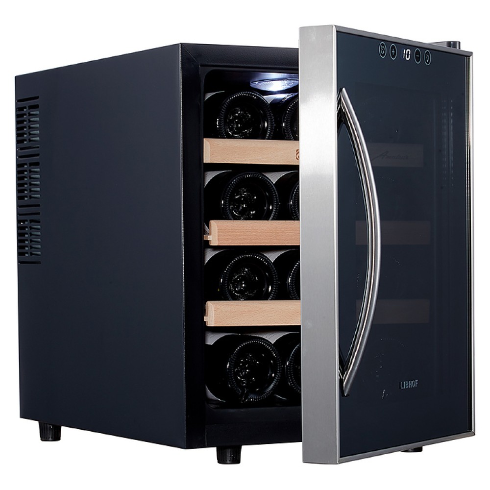 Встраиваемый винный шкаф Libhof AM-12 серии Amateur предназначен для хранения при оптимальных условиях бутилированного вина различных сортов в барах, ресторанах, специализированных магазинах, подсобных складских помещениях, а также в домашних условиях. Модель оснащена 3 съемными полками, распашной дверью с внешними петлями, длинной рукояткой и зеркальным стеклом с защитным напылением от ультрафиолетовых лучей. Корпус выполнен из металла, полки - из массива буковой древесины.