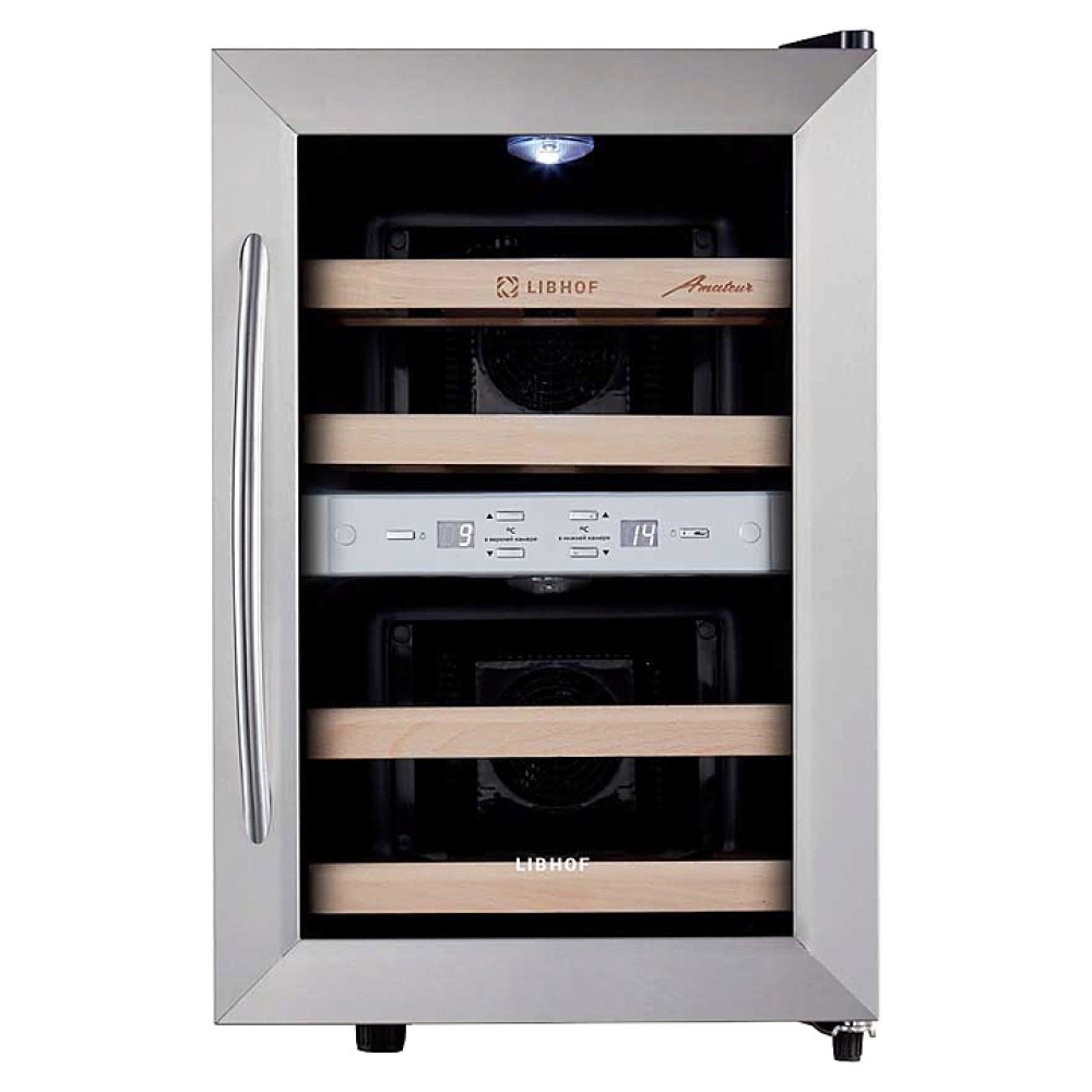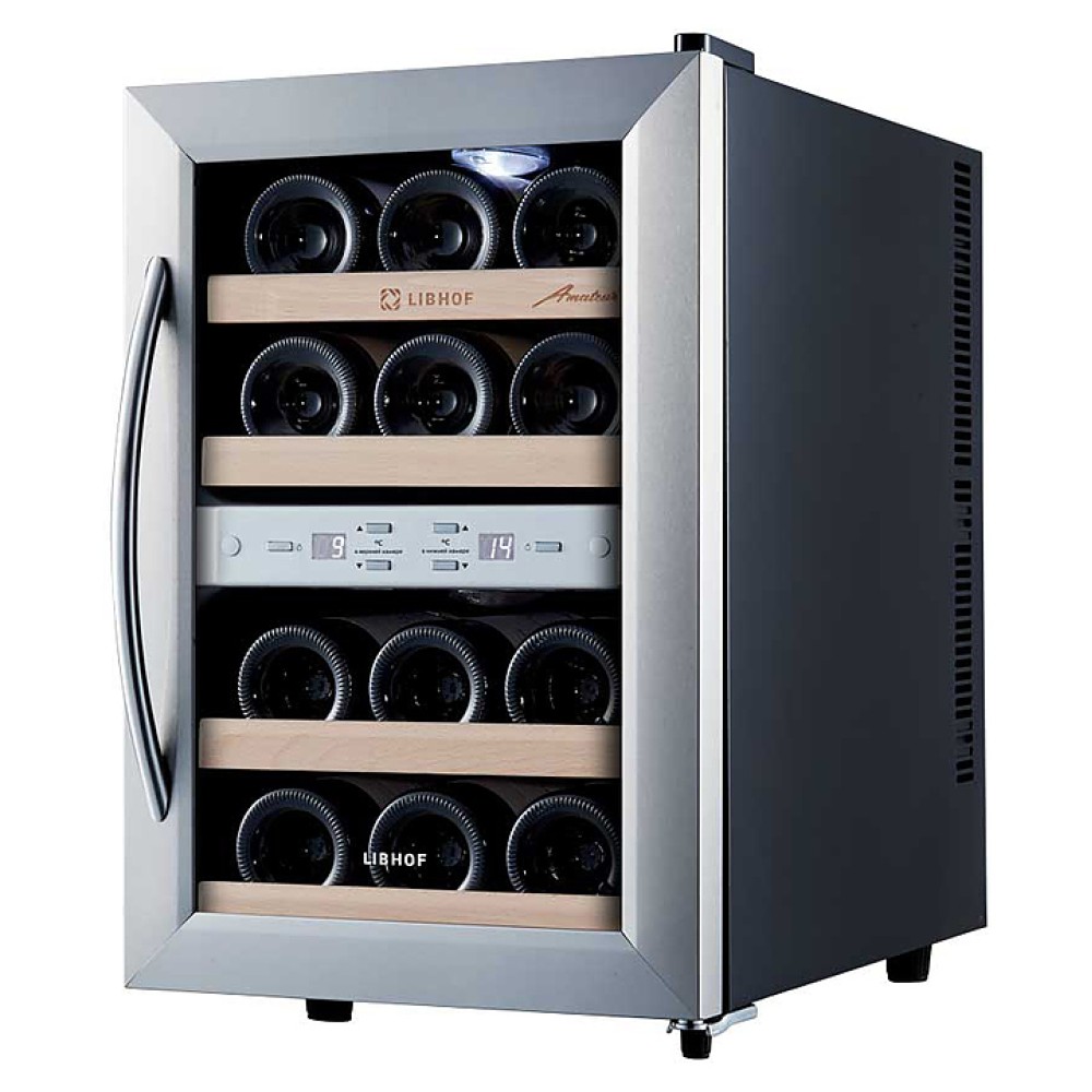 Винный шкаф Libhof Amateur AFD-12 предназначен для хранения при оптимальных условиях бутилированного вина различных сортов в барах, ресторанах, специализированных магазинах, подсобных складских помещениях, а также в домашних условиях. Модель оснащена 4 полками, распашной дверью с внешними петлями, длинной рукояткой и зеркальным стеклом с защитным напылением от ультрафиолетовых лучей. Корпус выполнен из металла, полки - из массива буковой древесины.