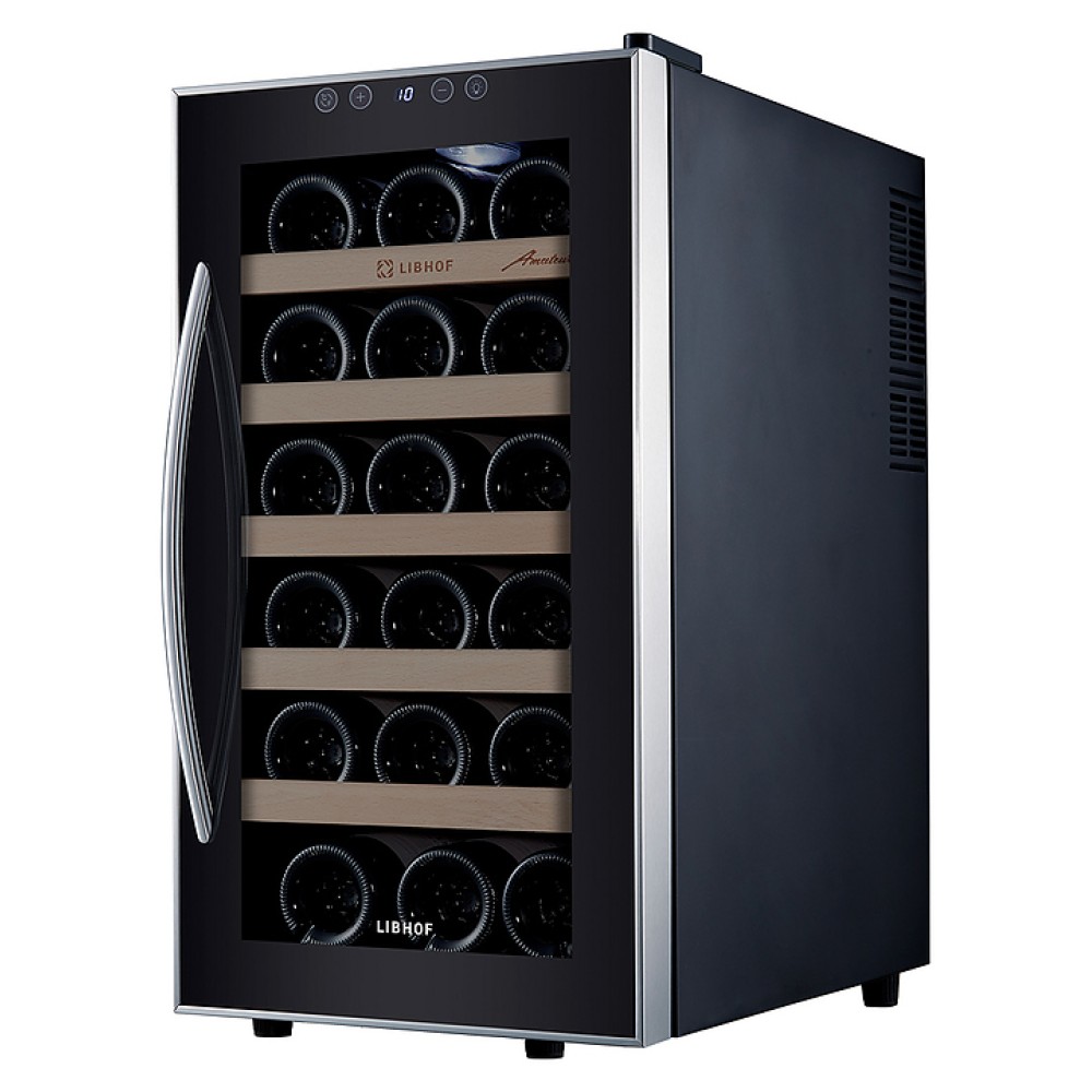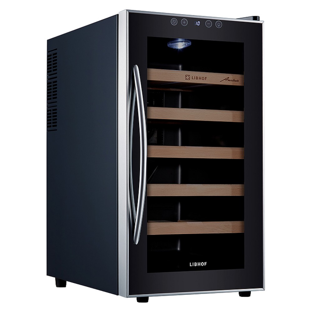 Винный шкаф Libhof Amateur AM-18 предназначен для хранения при оптимальных условиях бутилированного вина различных сортов в барах, ресторанах, специализированных магазинах, подсобных складских помещениях, а также в домашних условиях. Модель оснащена 5 съемными полками, распашной дверью с внешними петлями, длинной рукояткой и зеркальным стеклом с защитным напылением от ультрафиолетовых лучей. Корпус выполнен из металла, полки - из массива буковой древесины.
