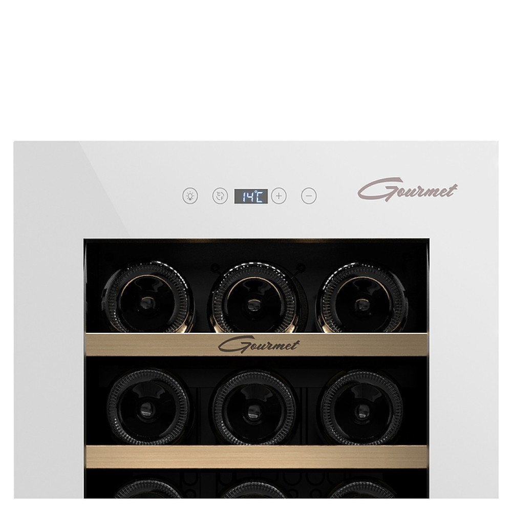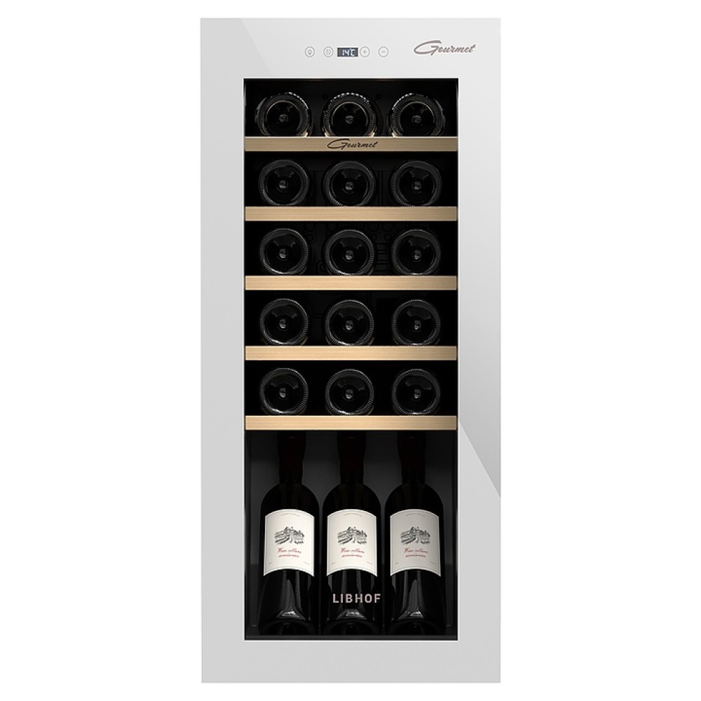 Винный шкаф Libhof Gourmet GM-18 white предназначен для хранения при оптимальных условиях и демонстрации бутилированного вина различных сортов в барах, ресторанах, специализированных магазинах, подсобных складских помещениях, а также в домашних условиях. Модель оснащена монотемпературной холодильной камерой, правосторонней распашной дверью, прозрачным обзорным остеклением и внешней сенсорной панелью управления с цифровым дисплеем индикации. Корпус выполнен из металла с антикоррозийным покрытием черного цвета, рама двери с белым покрытием и полным остеклением фронта, полки – из массива буковой древесины.
