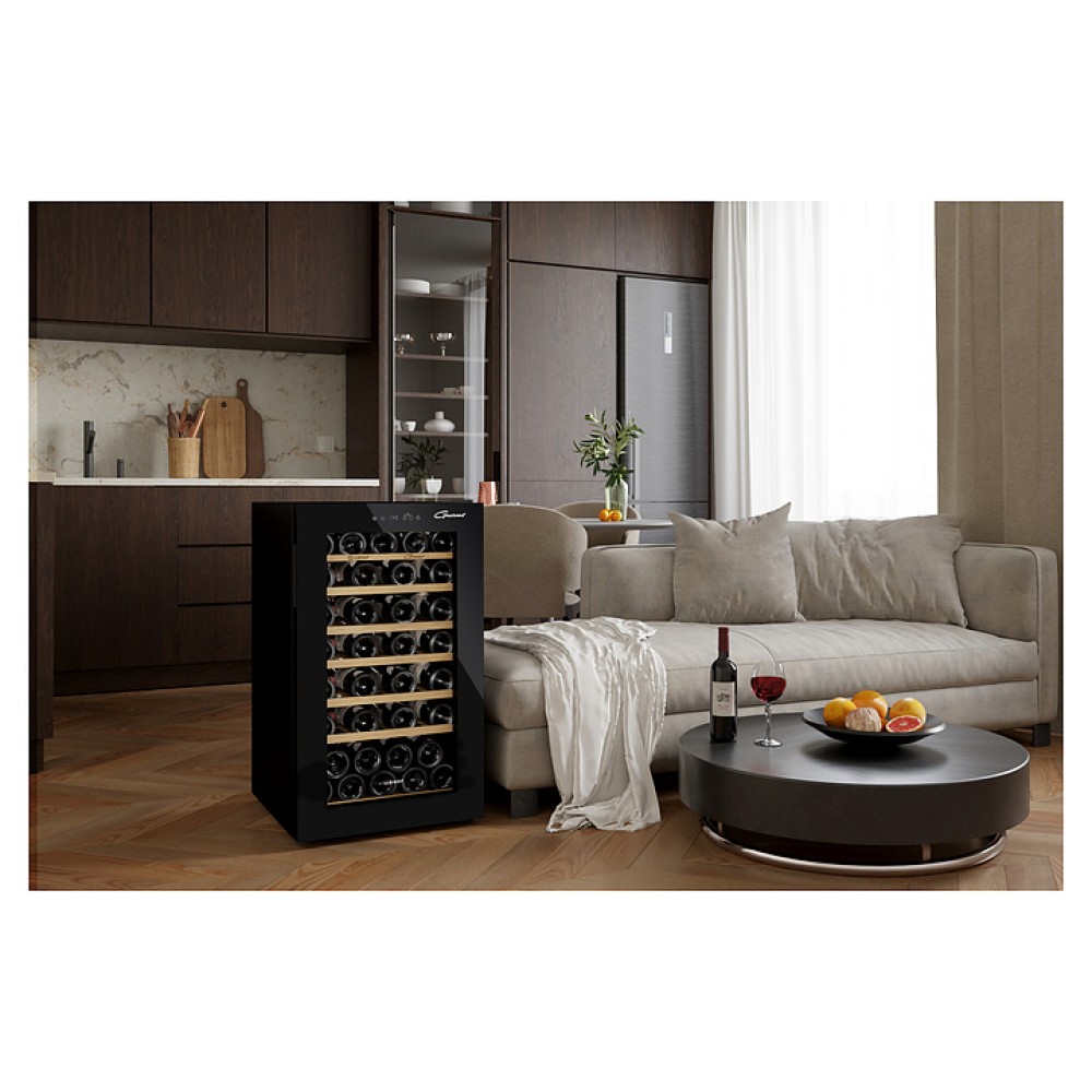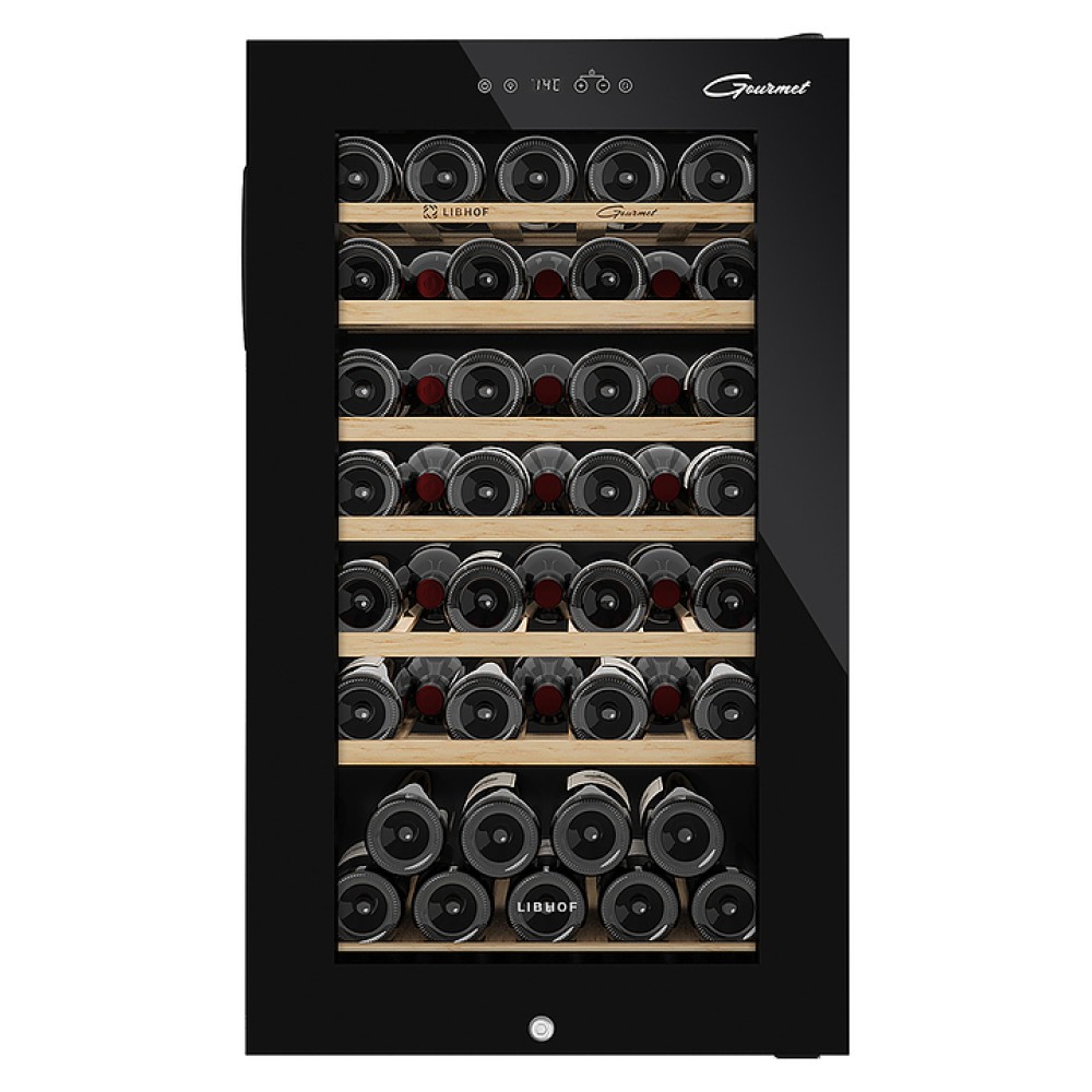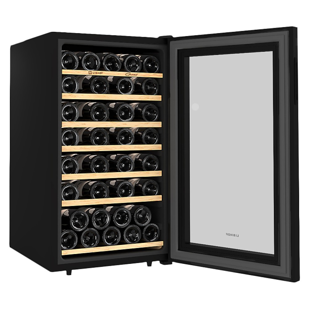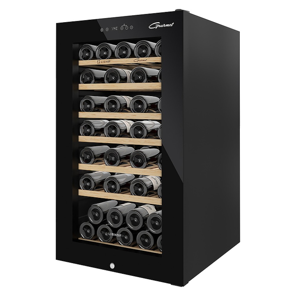 Винный шкаф Libhof Gourmet GM-49 Black предназначен для хранения при оптимальных условиях бутилированного вина различных сортов в барах, ресторанах, специализированных магазинах, подсобных складских помещениях, а также в домашних условиях. Модель оснащена монотемпературной холодильной камерой, распашной дверью на внутренних петлях, прозрачным обзорным стеклом, внешней сенсорной панелью управления и дисплеем индикации. Корпус выполнен из металла с антикоррозийным покрытием черного цвета, остекление – из закаленного стекла, полки и корзина – из массива буковой древесины.
