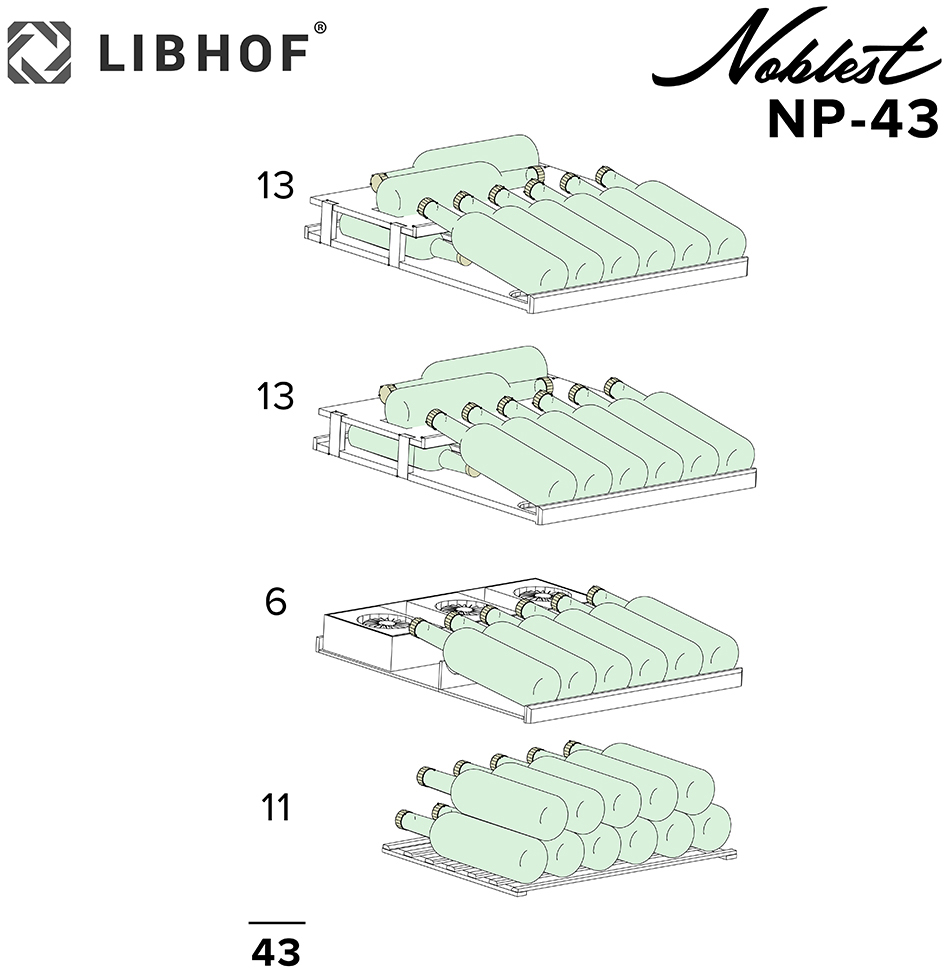 Винный шкаф Libhof Noblest NP-43 предназначен для хранения при оптимальных условиях бутилированного вина различных сортов в барах, ресторанах, специализированных магазинах, подсобных складских помещениях, а также в домашних условиях. Модель оснащена холодильной камерой с 2 демонстрационными полками, полкой с ванночкой и укороченной полкой, распашной дверью на внутренних петлях с замком, прозрачным обзорным стеклом и сенсорной панелью управления. Корпус выполнен из американского дуба, полки - из массива бука.