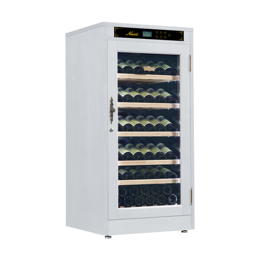 Винный шкаф Libhof Noblest NP-69 предназначен для хранения при оптимальных условиях бутилированного вина различных сортов в барах, ресторанах, специализированных магазинах, подсобных складских помещениях, а также в домашних условиях. Модель оснащена холодильной камерой с 4 демонстрационными полками, полкой с ванночкой и укороченной полкой, распашной дверью на внутренних петлях с замком, прозрачным обзорным стеклом и сенсорной панелью управления с дисплеем. Корпус выполнен из американского дуба, полки - из массива бука.