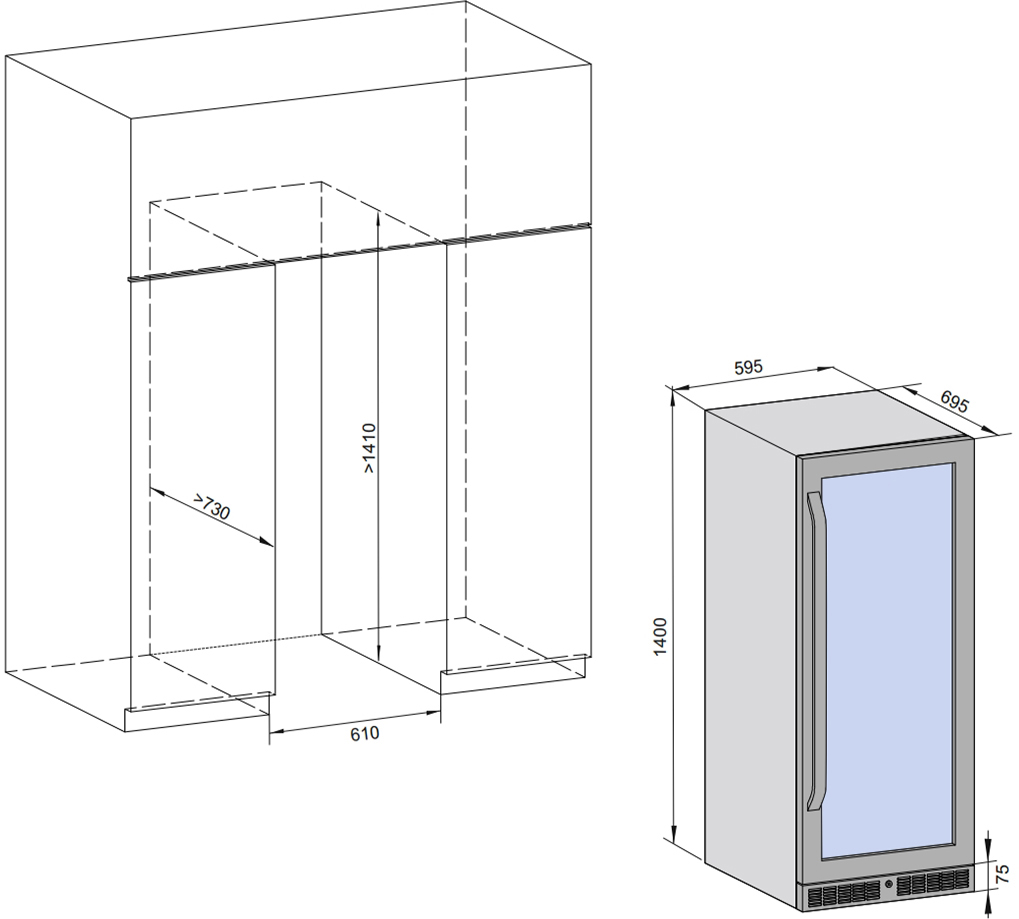 | Высота1400 мм | Глубина695 мм | Ширина595 мм |