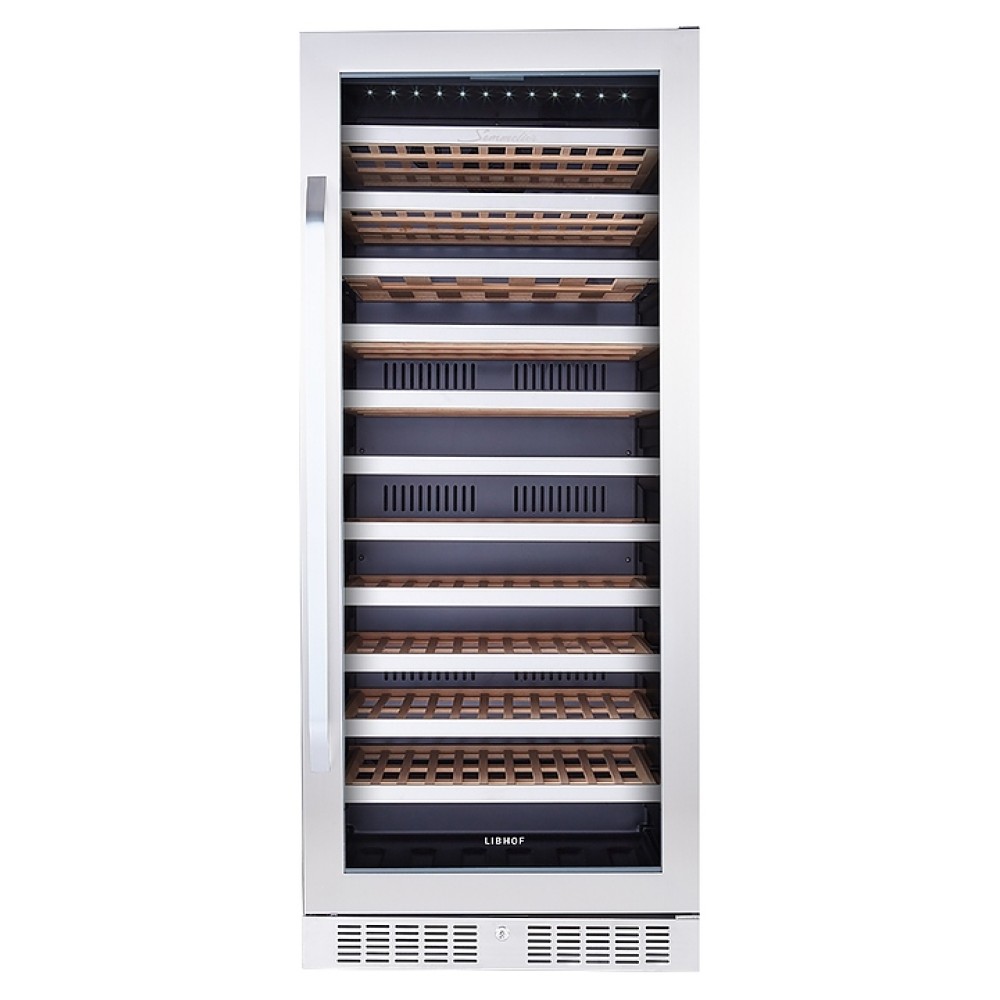Винный шкаф Libhof Sommelier SE-127 предназначен для хранения при оптимальных условиях бутилированного вина различных сортов в барах, ресторанах, специализированных магазинах, подсобных складских помещениях, а также в домашних условиях. Модель оснащена холодильной камерой с демонстрационной и 10 дисплейными полками, запираемой на замок распашной дверью на внешних петлях, длинной рукояткой и прозрачным обзорным стеклом. Корпус выполнен из металла, полки - из натурального бука.