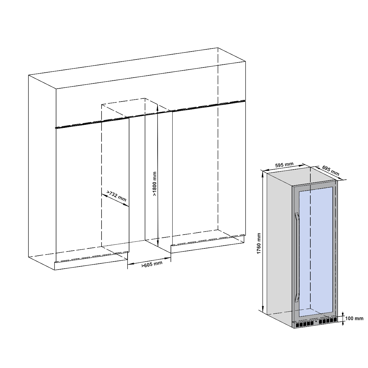 | Высота1760 мм | Глубина695 мм | Ширина595 мм |