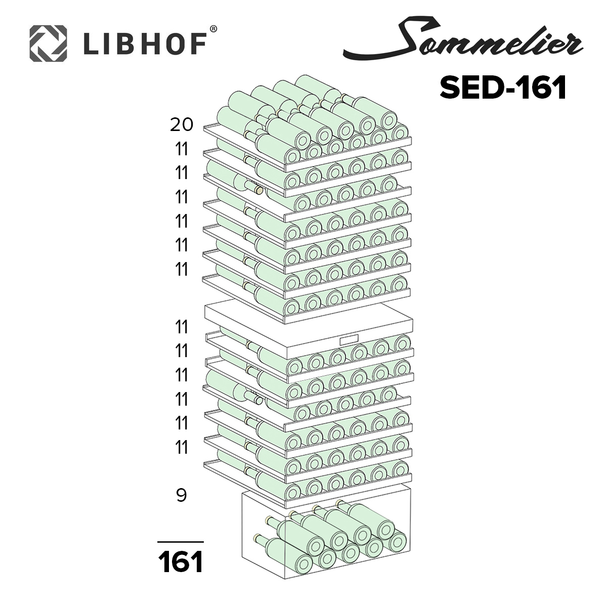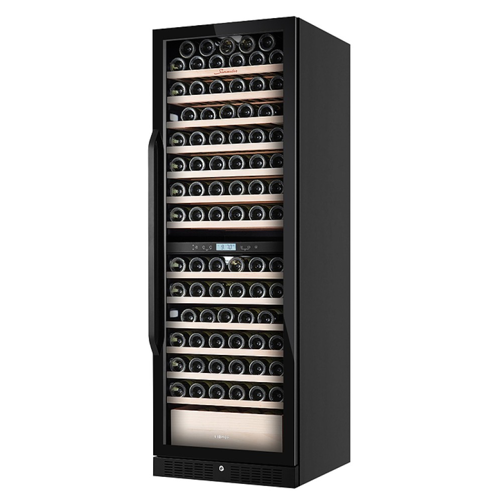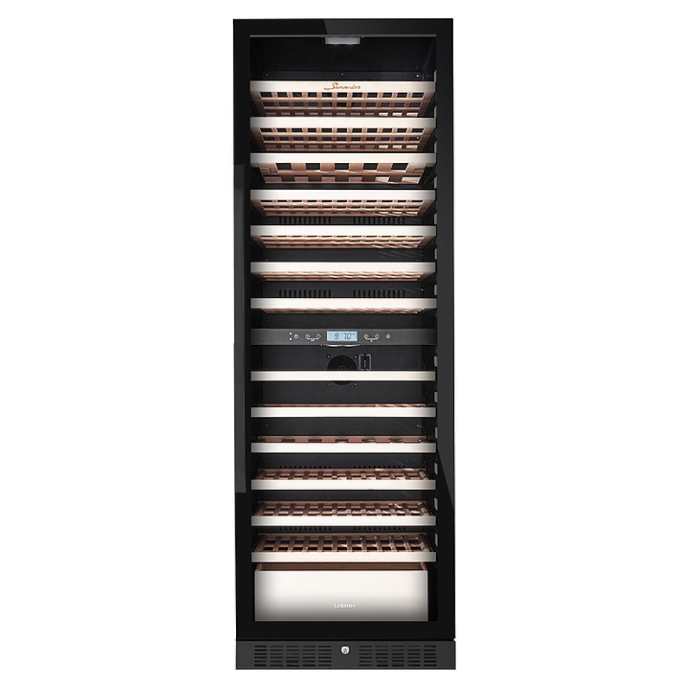 Винный шкаф Libhof Sommelier SED-161 предназначен для охлаждения вина перед подачей, длительного хранения или созревания винной коллекции в барах, ресторанах, специализированных магазинах, подсобных складских помещениях или в домашних условиях. Модель оснащена холодильной камерой холодильной камерой с 2 температурными зонами, демонстрационной полкой, ящиком, 11 съемными полками, запираемой на ключ распашной дверью на внешних петлях с ручкой, прозрачным обзорным остеклением, сенсорной панелью управления в средней части камеры и дисплеем с гигрометром. Корпус выполнен из металла, полки - из натурального бука.