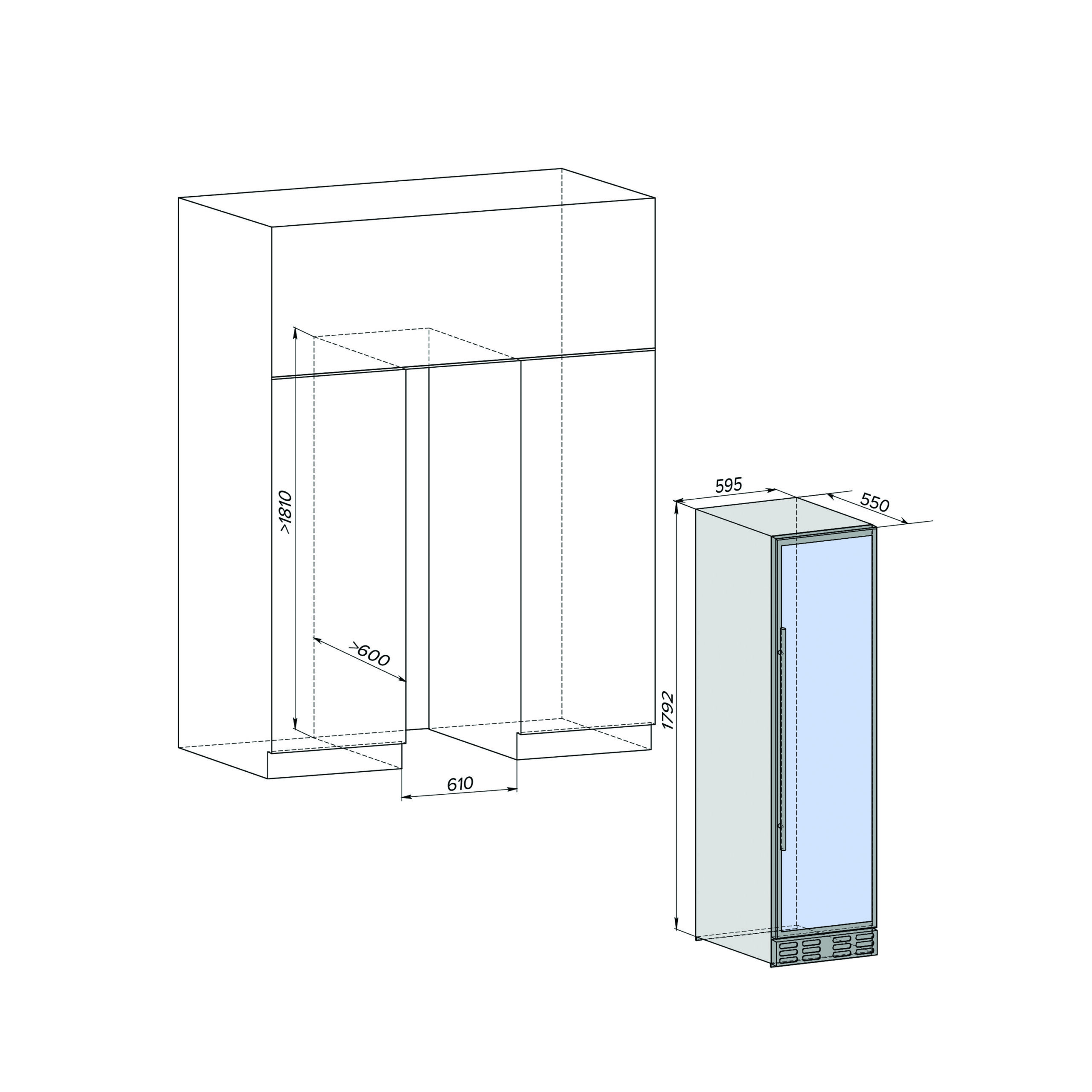 | Высота1800 мм | Глубина550 мм | Ширина595 мм |