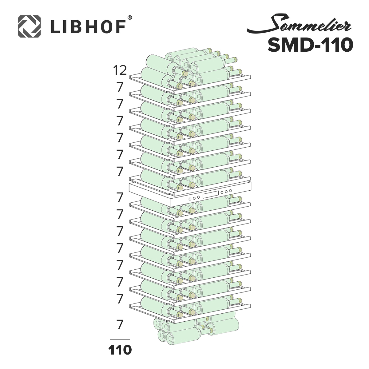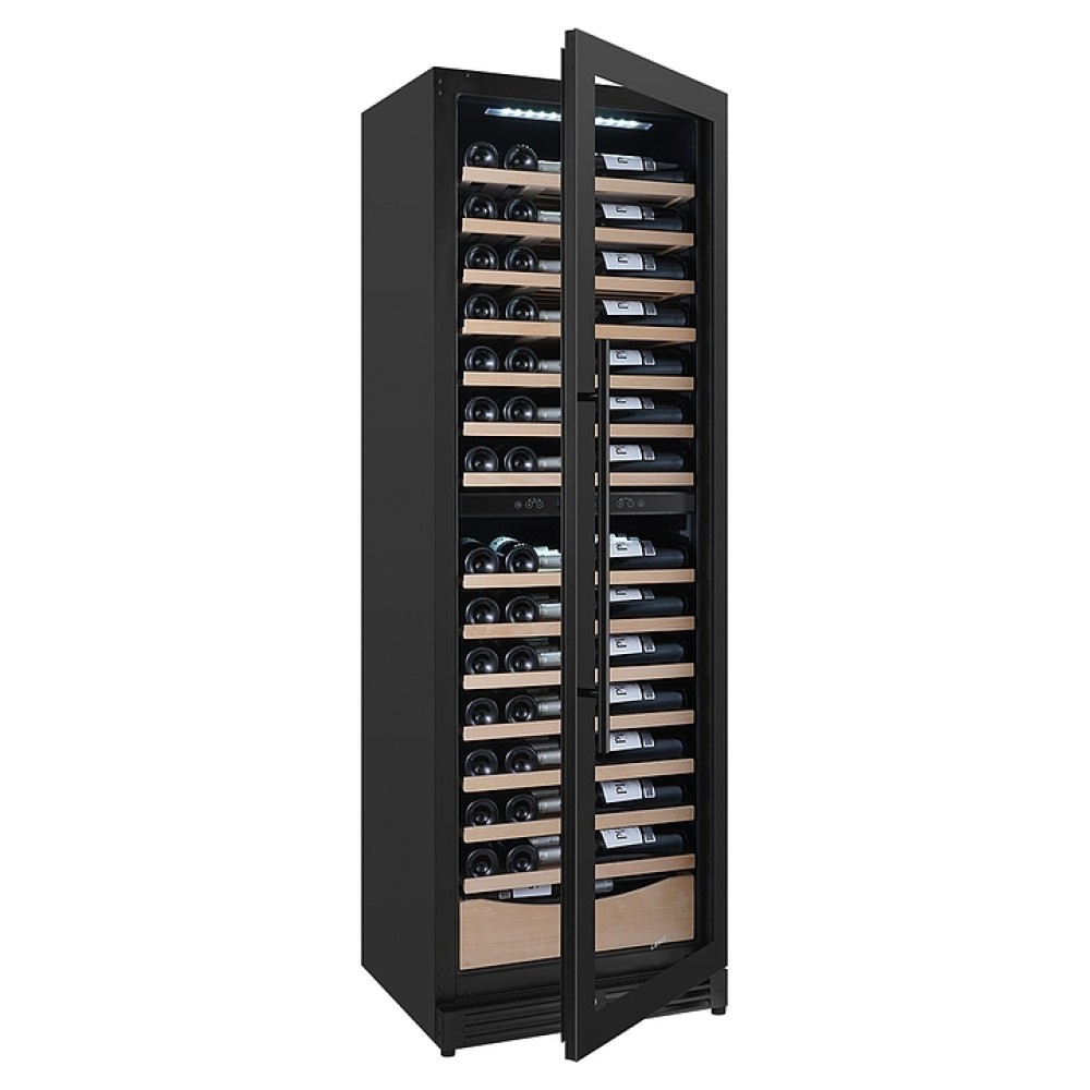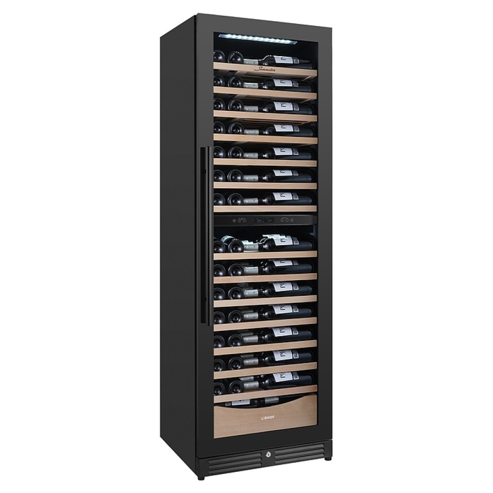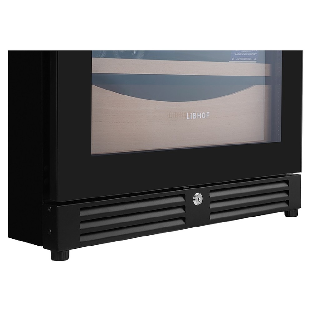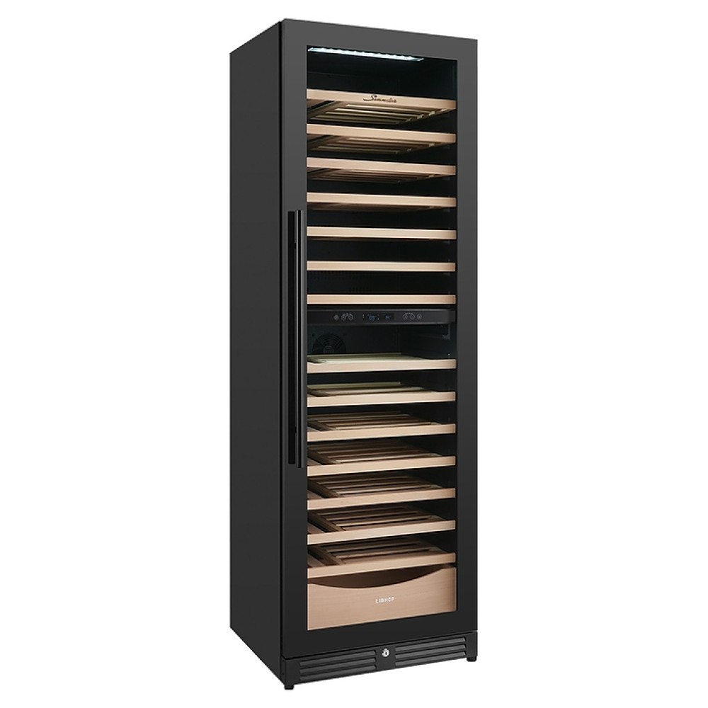 Встраиваемый винный шкаф Libhof Sommelier SMD-110 Slim Black предназначен для хранения при оптимальных условиях бутилированного вина различных сортов в барах, ресторанах, специализированных магазинах, подсобных складских помещениях, а также в домашних условиях. Модель оснащена холодильной камерой, 15 полками с направляющими для размещения бутылок, запираемой на ключ распашной дверью с внутренними петлями, длинной вертикальной рукояткой, прозрачным дымчатым обзорным стеклом и сенсорной панелью управления с цифровым дисплеем с индикацией синего цвета. Корпус и рукоятка выполнены из металла с антикоррозийным покрытием черного цвета, полки – из массива буковой древесины.