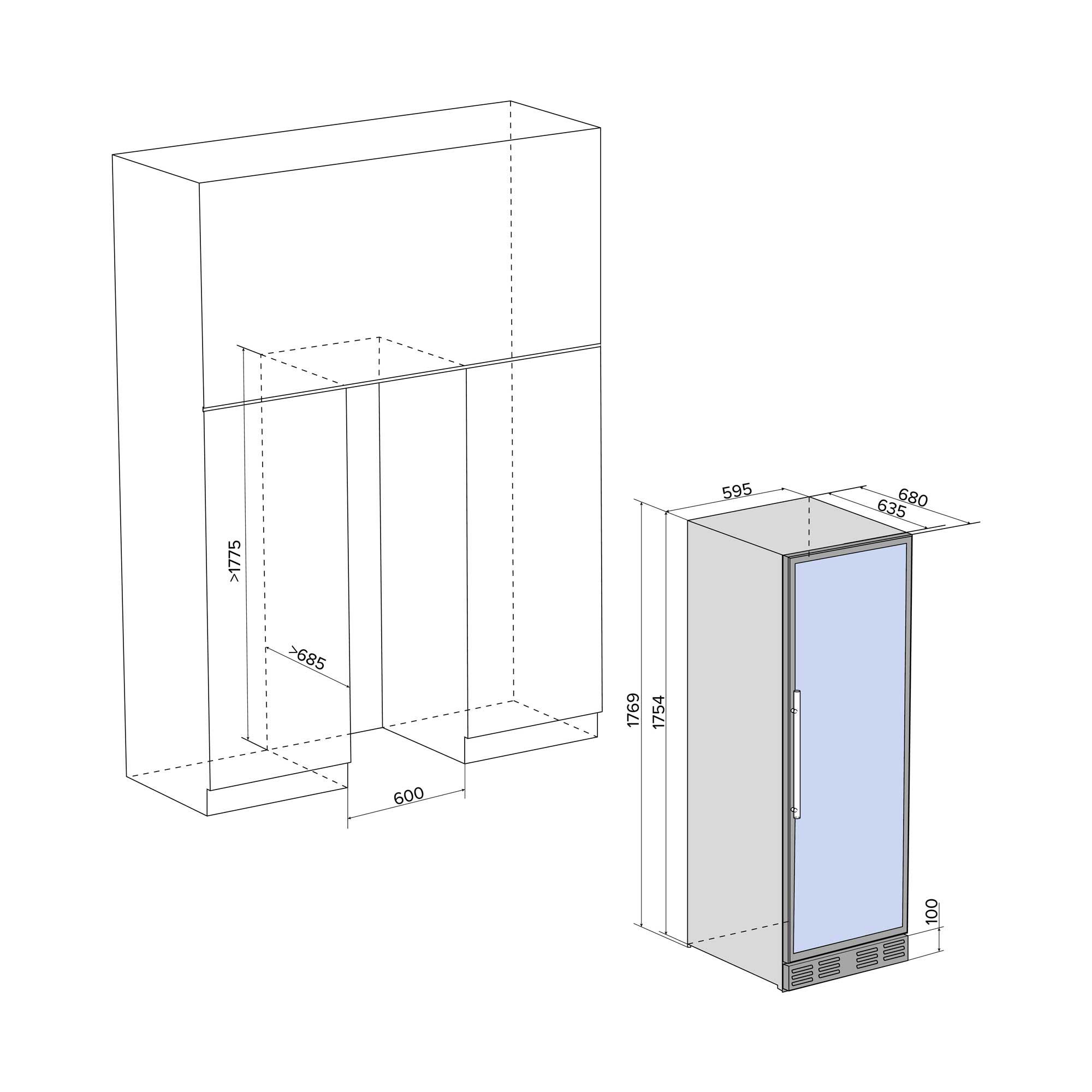 | Высота1769 мм | Глубина680 мм | Ширина595 мм |