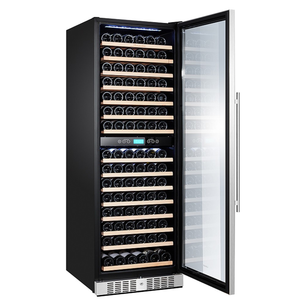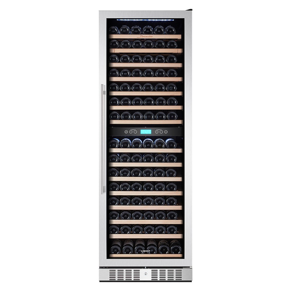 Винный шкаф Libhof Sommelier SOD-160 Silver предназначен для хранения при оптимальных условиях бутилированного вина различных сортов в барах, ресторанах, специализированных магазинах, подсобных складских помещениях, а также в домашних условиях. Модель оснащена холодильной камерой с 2 температурными зонами, 16 съемными полками, распашной дверью с внешними петлями, длинной рукояткой и прозрачным дымчатым обзорным стеклом с защитным напылением от ультрафиолетовых лучей. Корпус выполнен из металла, полки – из массива буковой древесины.