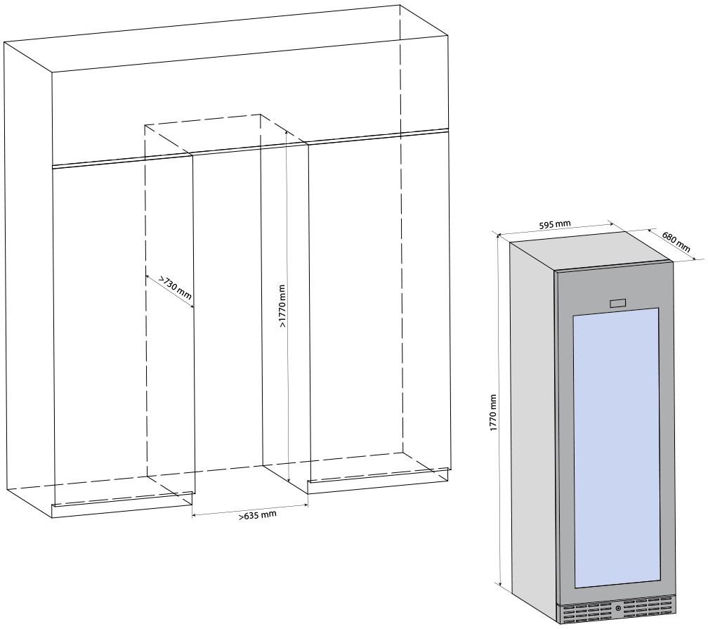 | Высота1770 мм | Глубина680 мм | Ширина595 мм |