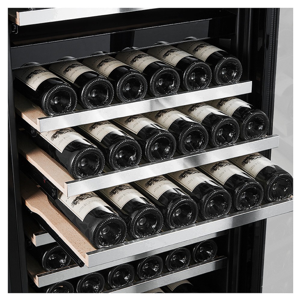 Встраиваемый винный шкаф Libhof Sommelier SRD-164 white предназначен для хранения при оптимальных условиях бутилированного вина различных сортов в барах, ресторанах, специализированных магазинах, подсобных складских помещениях, а также домашних условиях. Модель оснащена холодильной камерой с 2 независимыми температурными зонами, съемной цокольной вентиляционной решеткой, запираемой на ключ распашной дверью на внешних петлях со скрытыми ручками, прозрачным обзорным остеклением, внешней сенсорной панелью управления и цифровым дисплеем. Корпус выполнен из металла с антикоррозийным покрытием, полки - из массива буковой древесины с хромированной окантовкой фасада.