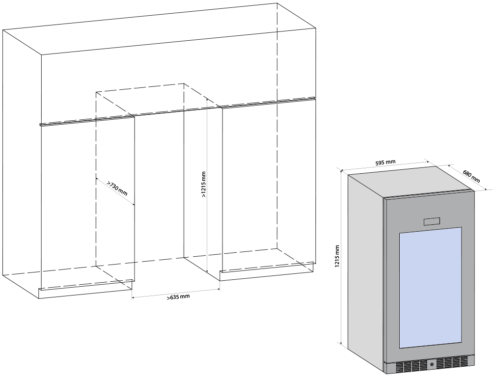 | Высота1215 мм | Глубина680 мм | Ширина595 мм |