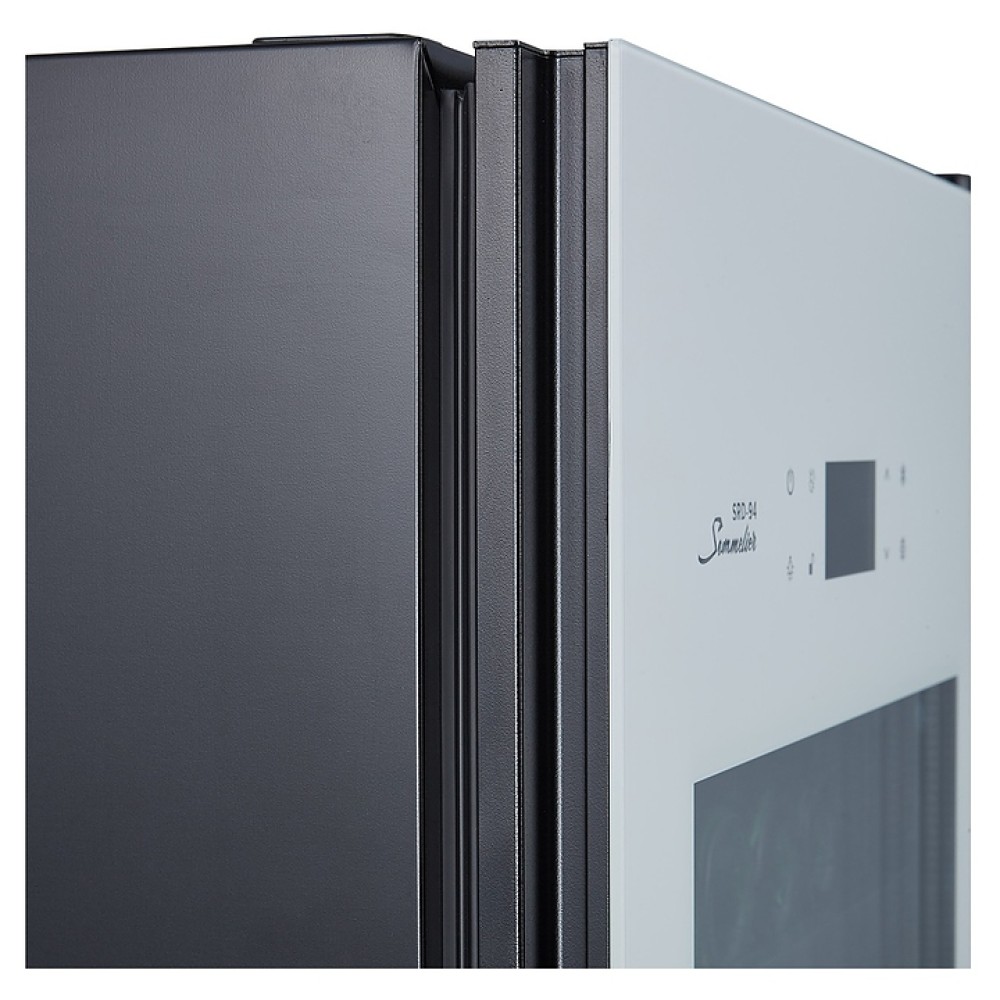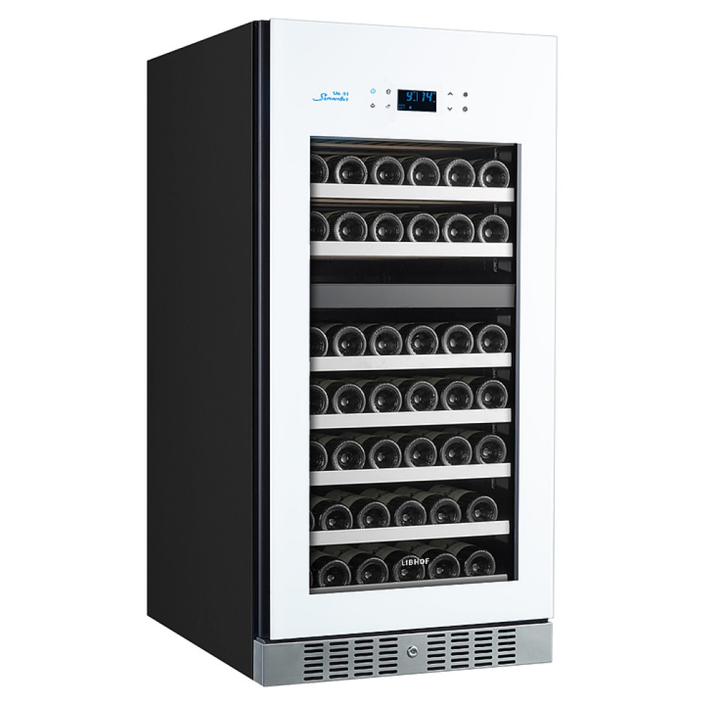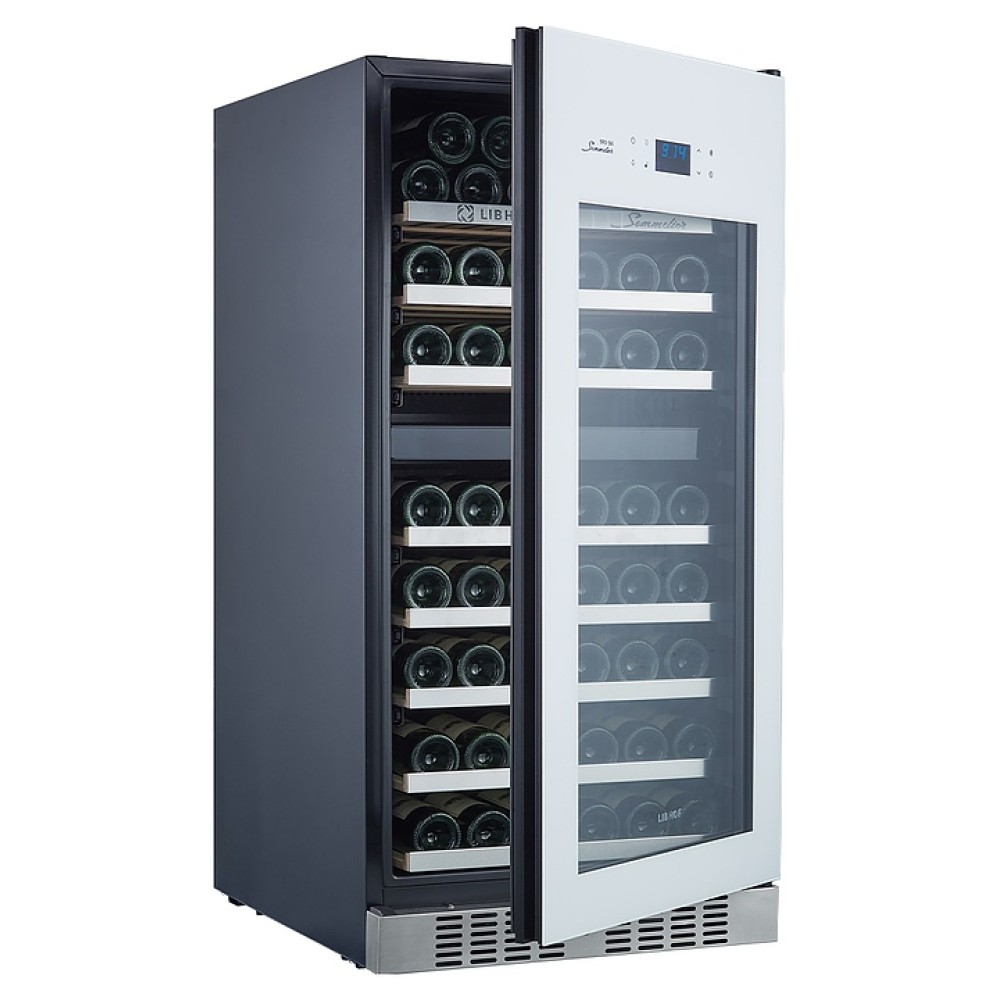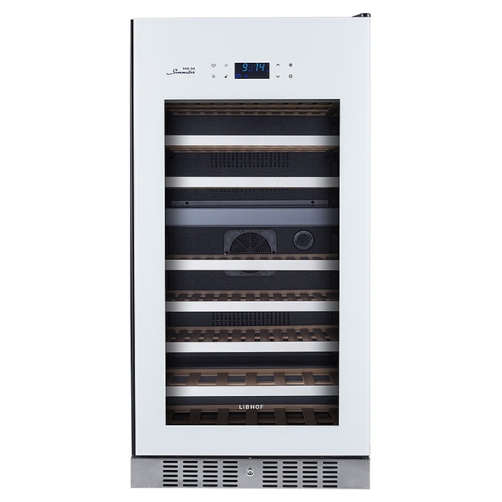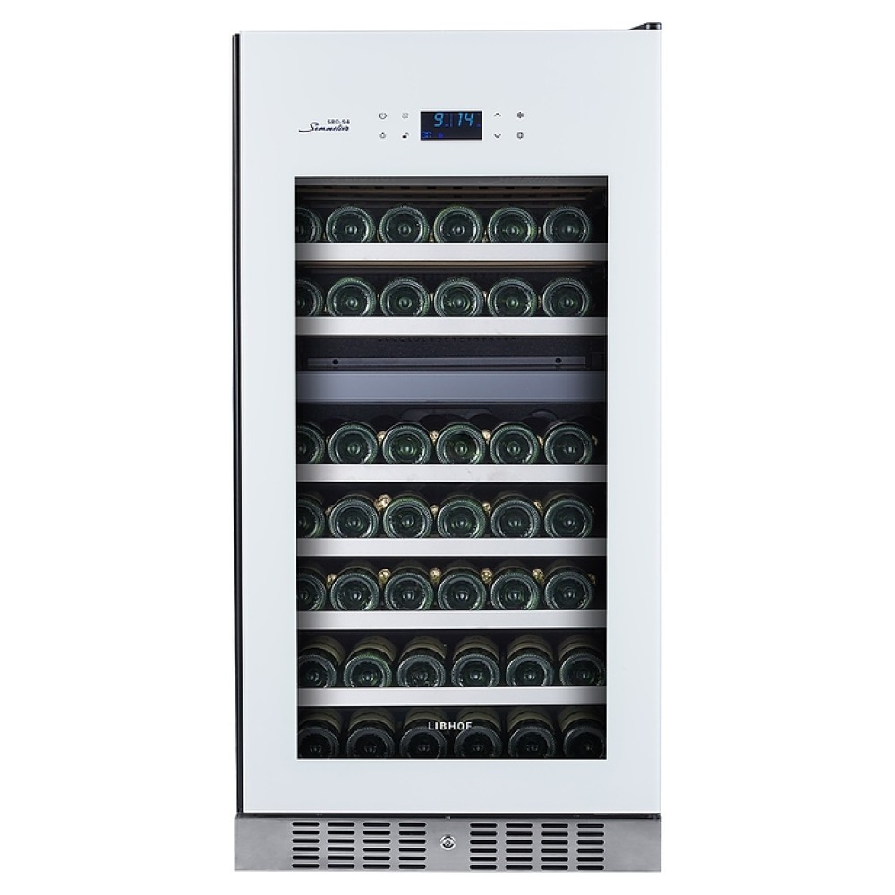 Встраиваемый винный шкаф Libhof Sommelier SRD-94 White предназначен для хранения при оптимальных условиях бутилированного вина различных сортов в барах, ресторанах, специализированных магазинах, подсобных складских помещениях, а также домашних условиях. Модель оснащена холодильной камерой с 2 независимыми температурными зонами, съемной цокольной вентиляционной решеткой, запираемой на ключ распашной дверью на внешних петлях, интегрированной рукояткой, прозрачным дымчатым обзорным остеклением, внешней сенсорной панелью управления и цифровым дисплеем. Корпус выполнен из металла с антикоррозийным покрытием черного цвета, полки – из массива буковой древесины с хромированной окантовкой фасада, фронт двери белого цвета.
