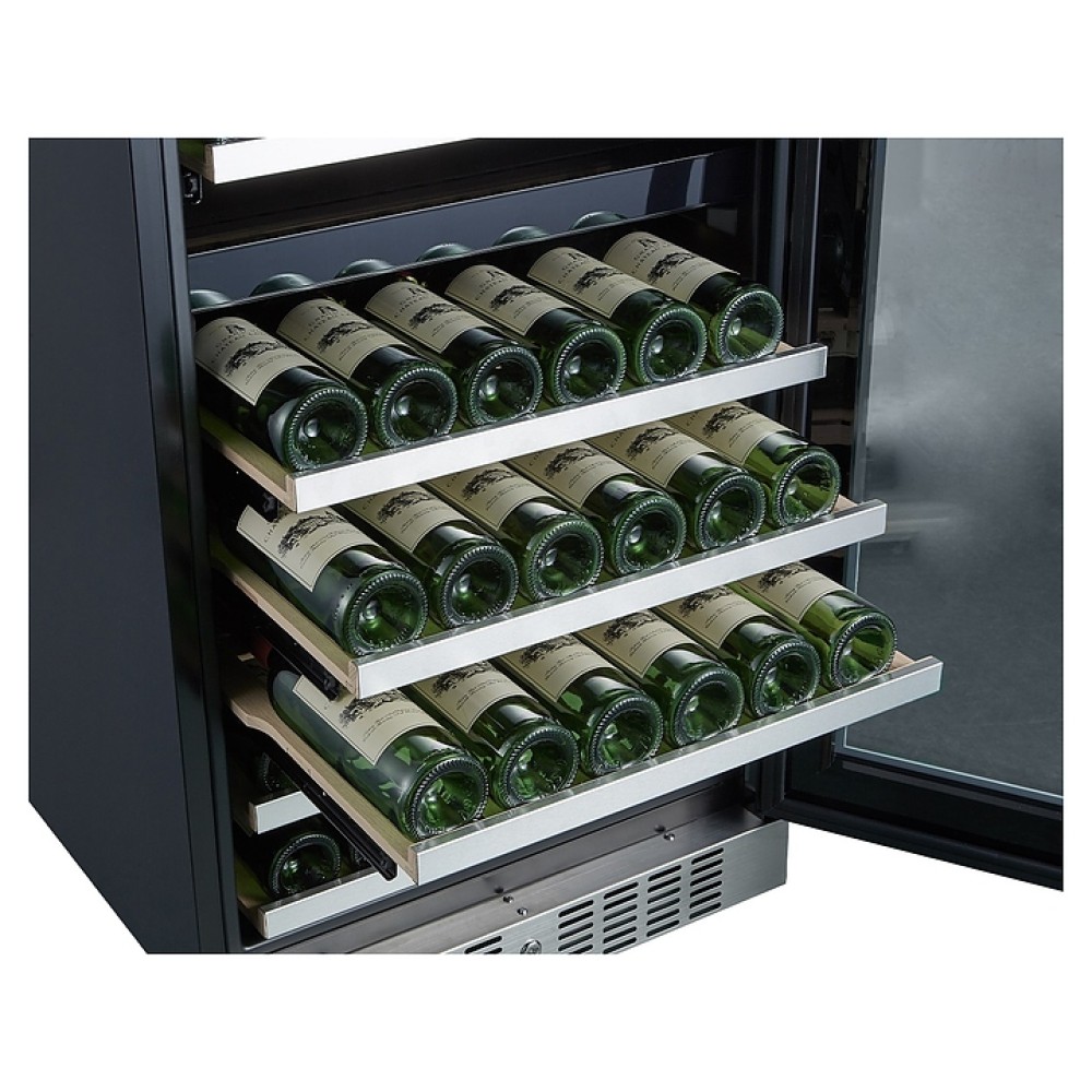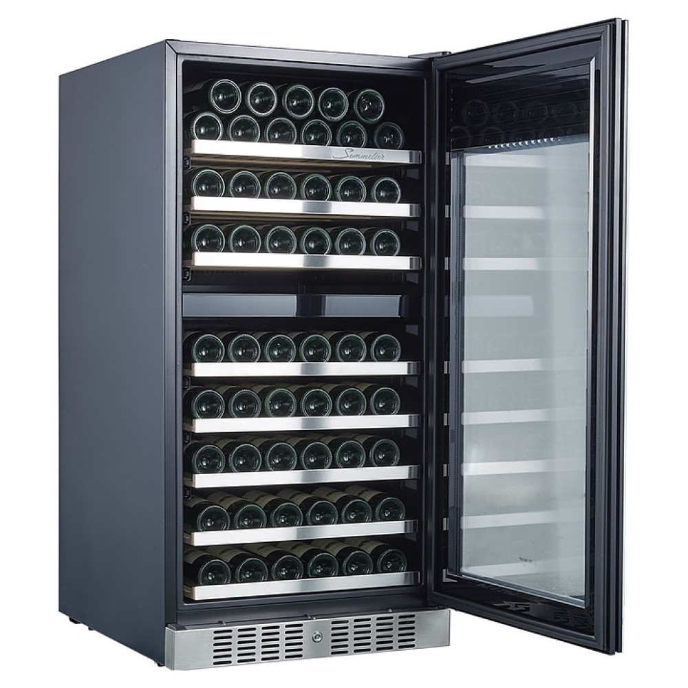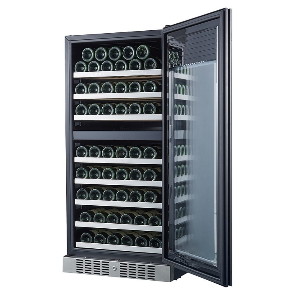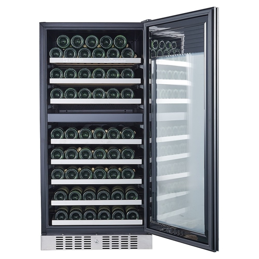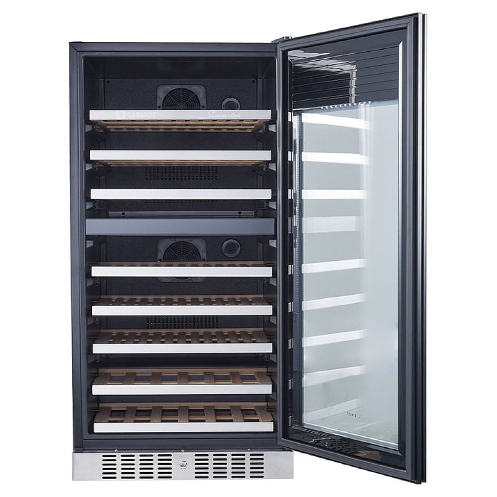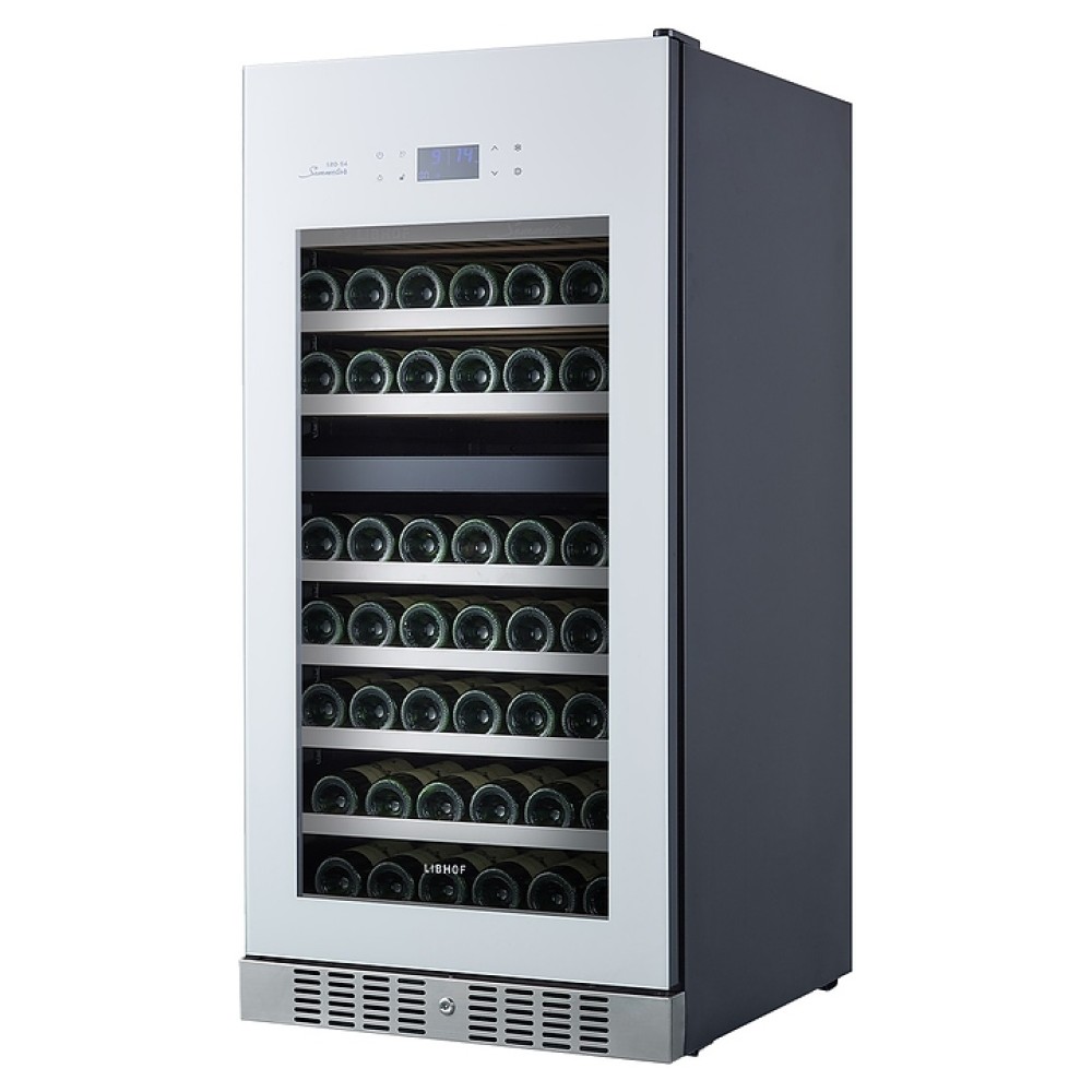 Встраиваемый винный шкаф Libhof Sommelier SRD-94 White предназначен для хранения при оптимальных условиях бутилированного вина различных сортов в барах, ресторанах, специализированных магазинах, подсобных складских помещениях, а также домашних условиях. Модель оснащена холодильной камерой с 2 независимыми температурными зонами, съемной цокольной вентиляционной решеткой, запираемой на ключ распашной дверью на внешних петлях, интегрированной рукояткой, прозрачным дымчатым обзорным остеклением, внешней сенсорной панелью управления и цифровым дисплеем. Корпус выполнен из металла с антикоррозийным покрытием черного цвета, полки – из массива буковой древесины с хромированной окантовкой фасада, фронт двери белого цвета.