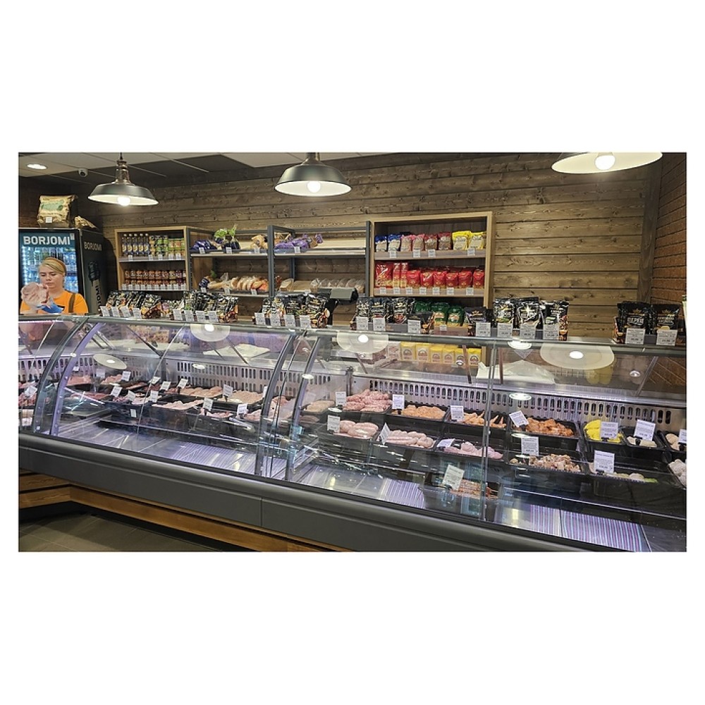Холодильная витрина Lida Midi-2 U (2410х1220х1250 мм) используется на предприятиях общественного питания и торговли для кратковременного хранения и предпродажной демонстрации охлажденного мяса, полуфабрикатов и других гастрономических товаров. Модель оснащена электронным блоком управления, гнутым фронтальным стеклом и светодиодной подсветкой. Рабочая поверхность продавца, полки для выкладки товара и ТЭНы оттайки выполнены из нержавеющей стали, наружные и внутренние поверхности - из оцинкованной стали с антикоррозийным покрытием порошковой эмалью, заливка внутреннего объема - из пенополиуритана высокой плотности, испаритель - из медной трубы, ночные шторки - из оргстекла.