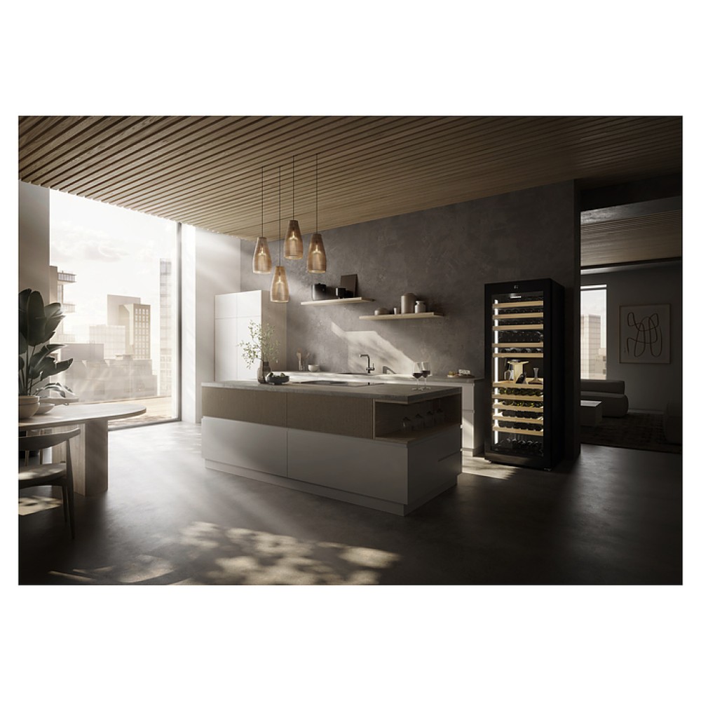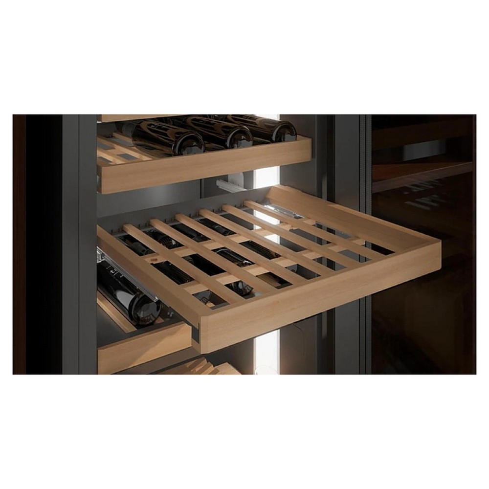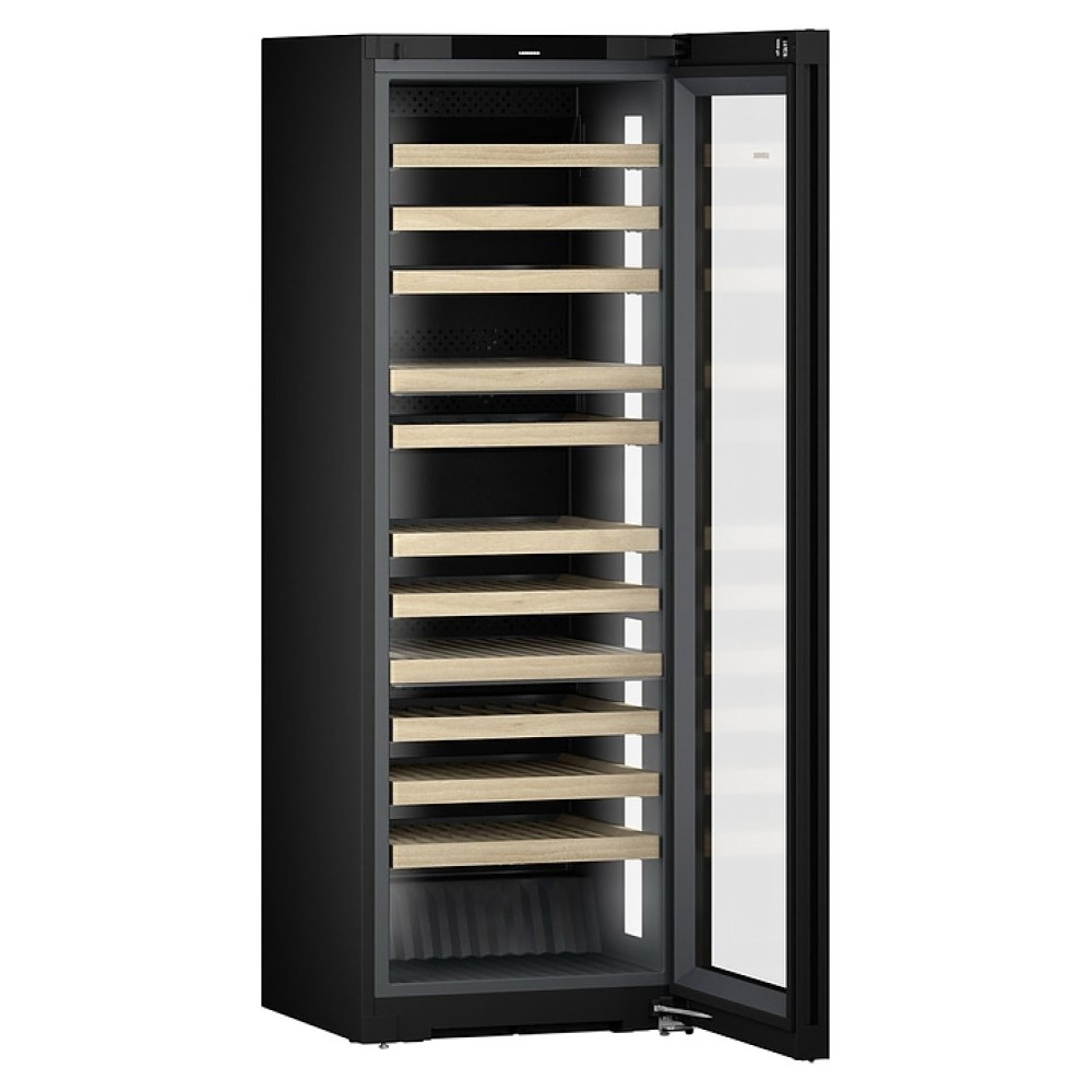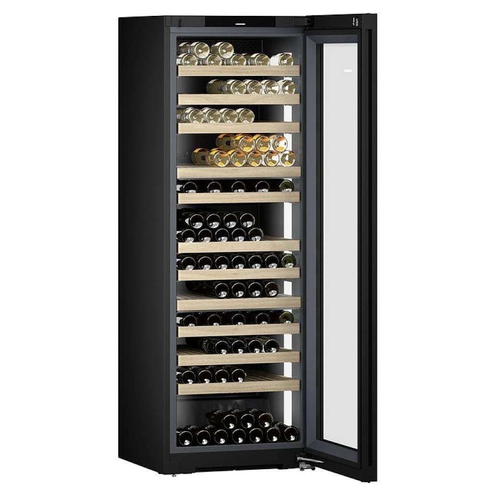 Винный шкаф Liebherr WPgbi 7473 серии Vinidor Selection предназначен для охлаждения и хранения при оптимальных условиях бутилированного вина различных сортов в барах, ресторанах, специализированных магазинах, подсобных складских помещениях, а также домашних условиях. Модель оснащена холодильной камерой с 3 независимыми температурными зонами, правосторонней распашной дверью на перенавешиваемых петлях с обзорным остеклением, кабелем питания с евровилкой, расположенным в верхней части фасада двери сенсорным цветным дисплеем управления и индикации. Боковины и сухая задняя панель выполнены из легированной стали с устойчивой к царапинам и отпечаткам пальцев сатинированной вертикальными штрихами поверхностью BlackSteel оттенка черная сталь, дверь с фасадом GlassBlack с полным фронтальным остеклением без винтового крепежа, полки – из массива буковой древесины, упаковка – из гофрокартона, полимерной пленки и полистирола.