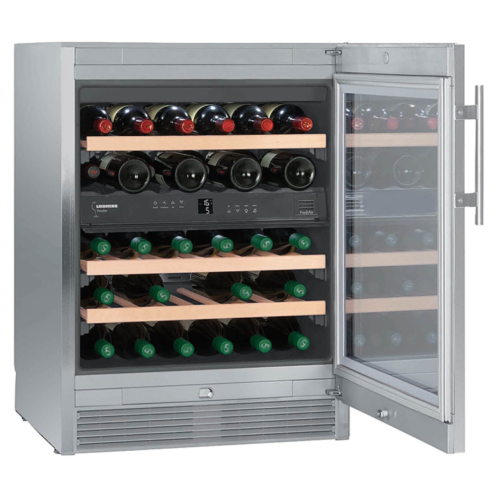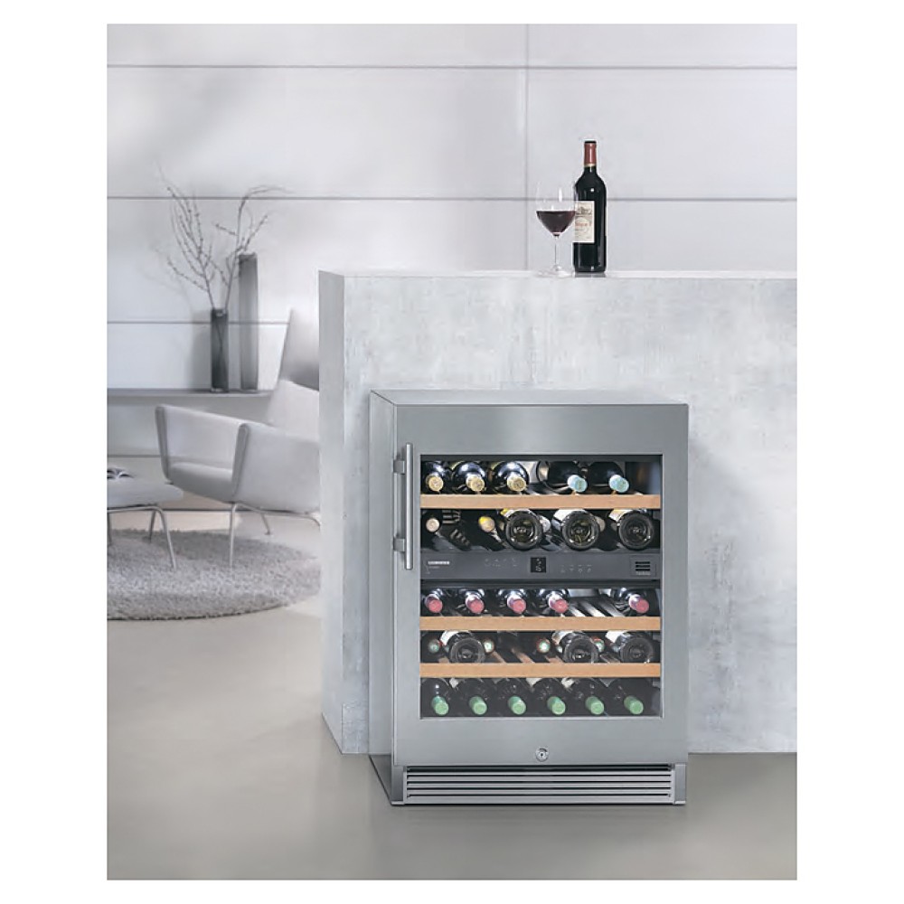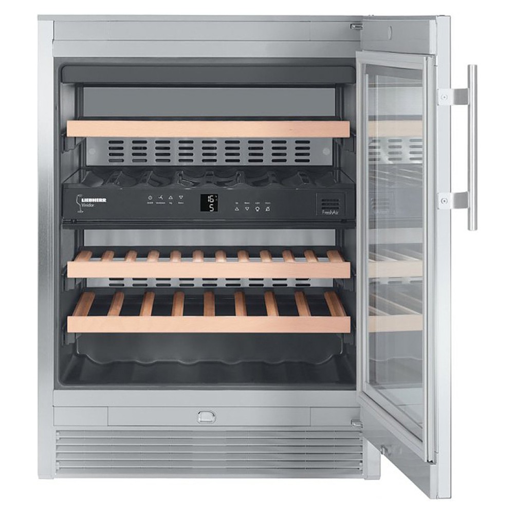 Винный шкаф Liebherr WTes 1672 серии Vinidor предназначен для охлаждения и длительного хранения разливного вина в частных домах, квартирах, отелях и офисах. Модель оснащена сенсорным управлением и жидкокристаллическим дисплеем с цифровой индикацией температуры. Внутренняя прокладка выполнена из серого полистирола, корпус - из нержавеющей стали, дверь - из стекла с УФ-покрытием с и рамой из нержавеющей стали, полки - из дерева акации.