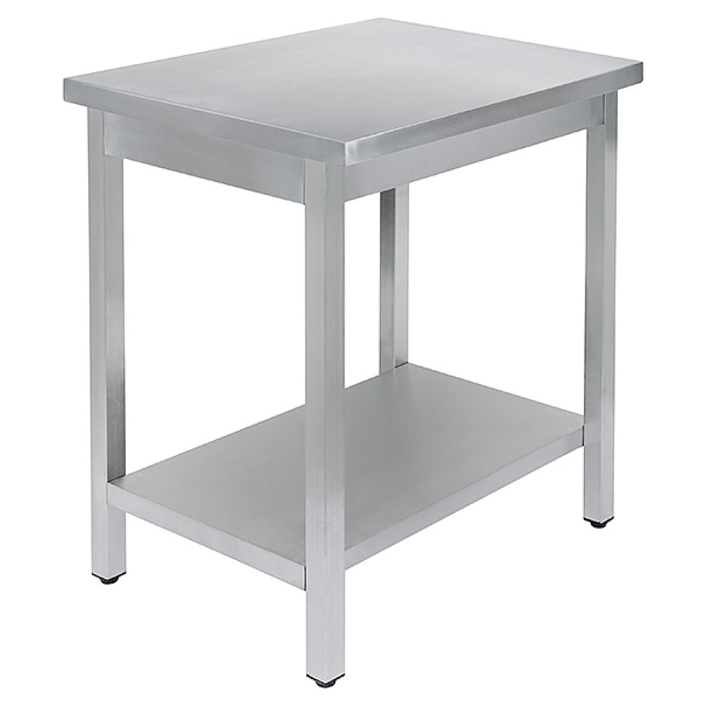 Универсальный производственный стол Luxstahl СПУ-9.5/7/8.5 предназначен для разделывания и нарезки пищевых продуктов, приготовления различных блюд, размещения оборудования и инвентаря на предприятиях общественного питания и торговли. Модель оснащена прямоугольной столешницей и сплошной полкой. Столешница и полка выполнены из высококачественной нержавеющей стали AISI 430, каркас – из нержавеющей стали AISI 430, опоры – из профиля трубы из нержавеющей стали AISI 430, подпятники опор – из прочного пластика.