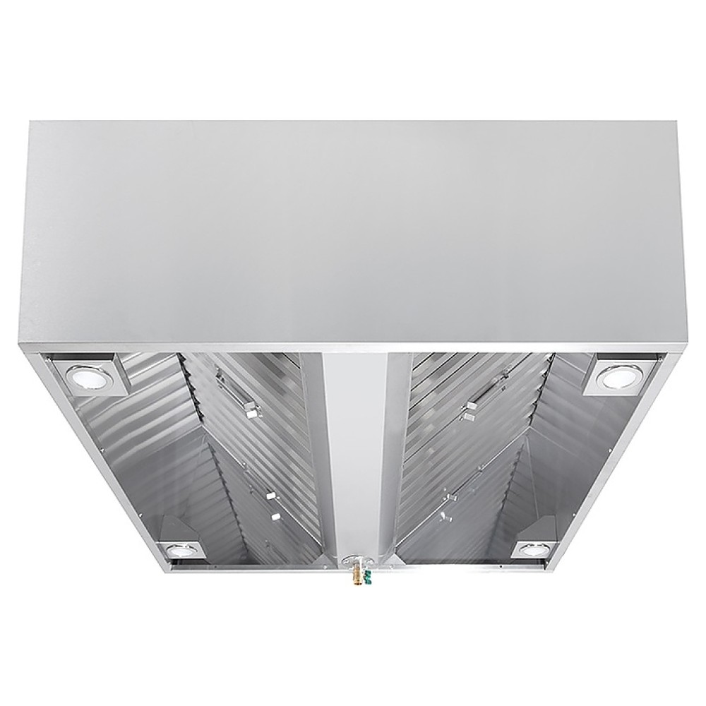 Островной вытяжной зонт Luxstahl ЗКЦ 1800х1000 предназначен для создания оптимального микроклимата в цехах, предотвращения проникновения запахов в обеденный зал и эффективной защиты оборудования путем очистки воздуха от влаги и жира, образующихся в процессе приготовления, на предприятиях пищевой промышленности, общественного питания и торговли. Модель оснащена 4 светильниками. Корпус коробчатого типа выполнен из высококачественной нержавеющей стали марки AISI 430, задняя и верхняя панели – из оцинкованной стали.