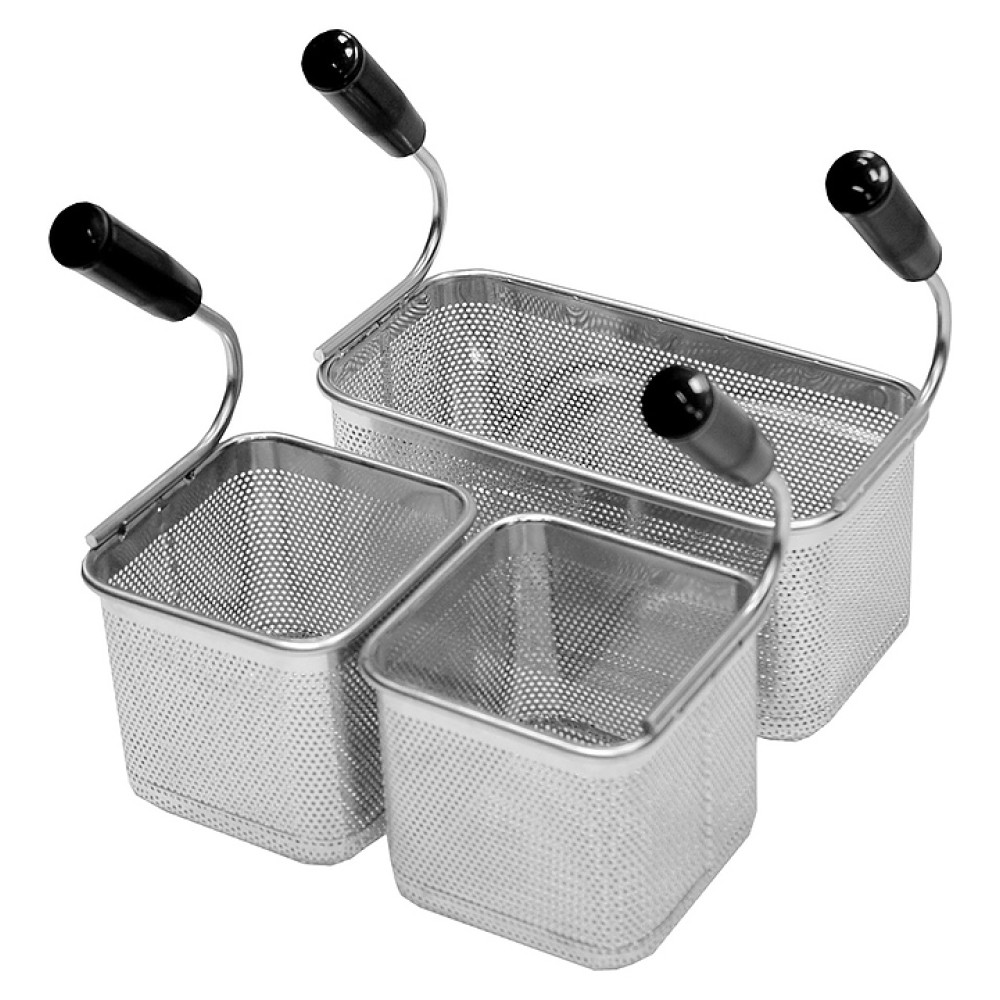 В комплект поставки входят 2 корзины 130x130x150 мм и корзина 130x260x150 мм из нержавеющей стали AISI 304.