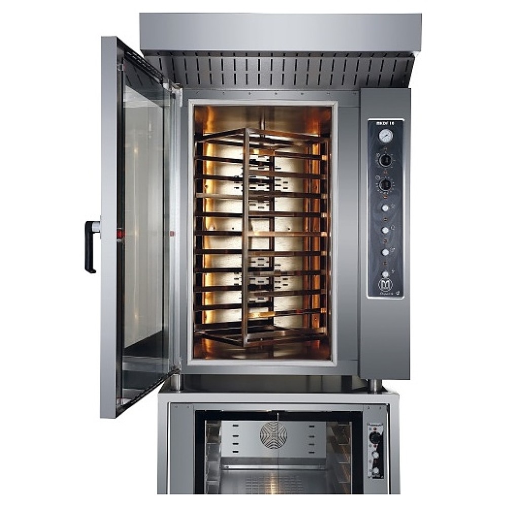 Ротационная печь MAKSAN MKDF-10 предназначена для выпечки хлебобулочных и кондитерских изделий в пекарнях, кондитерских, на предприятиях пищевой промышленности и общественного питания. Модель оснащена вращающейся стойкой с направляющими для противней, распашной дверью с рукояткой и электромеханической панелью управления. Корпус и внутренняя облицовка камеры выполнены из высококачественной нержавеющей стали, остекление двери – из прочного термостойкого стекла.