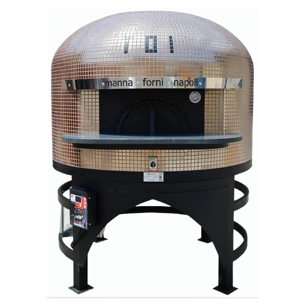 Газовая печь для пиццы Manna Forni MF120DG используется на предприятиях общественного питания и торговли для приготовления и разогрева пиццы. Модель устанавливается непосредственно в зале на открытой кухне. Горелка оснащена двумя факелами с низким и высоким пламенем с независимым контролем горения для обеспечения яркости пламени, что упрощает управление и обеспечивает значительную экономию топлива. Естественная конвекция равномерно распределяет жар внутри камеры. Керамическое волокно, армированная сетка и огнеупорные материалы гарантируют стабильный нагрев и минимальные потери тепла. Купол и внешний колпак выполнены из кирпича ручной формовки, свод и жарочная поверхность - из огнеупорного материала Casapulla, приемная полка - из лавы, съемная опорная стойка - из усиленного железа, утеплитель - из керамзита и керамического волокна.