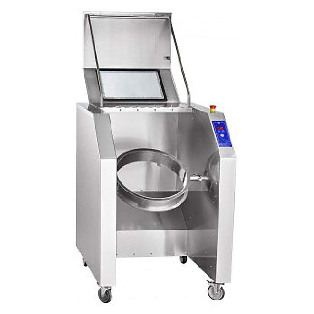 Вакуумный массажер-маринатор для мяса Abat ММ-50В используется используется на предприятиях общественного питания и торговли для маринования различных видов мяса, птицы и рыбы, кроме того мясомассжер значительно ускоряет операцию посола, улучшает вкусовые и физические показатели сырья. Процесс массирования и маринования происходит во вращающемся на небольшой скорости барабане, что позволяет приправам и специям проникнуть в волокна мяса, не нарушая структуру продукции. Модель оснащена электромеханической панелью управления, позволяющей устанавливать режимы работы, кнопкой аварийной остановки, съемным герметичным барабаном, фиксируемом с помощью прижимной траверсы, 2 передними поворотными колесами с тормозом и 2 фиксированными задними. Каркас, обшивка корпуса и детали выполнены из нержавеющей стали.