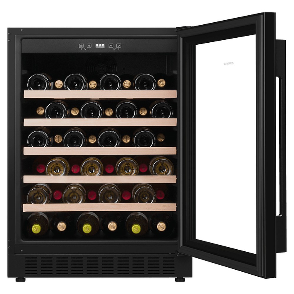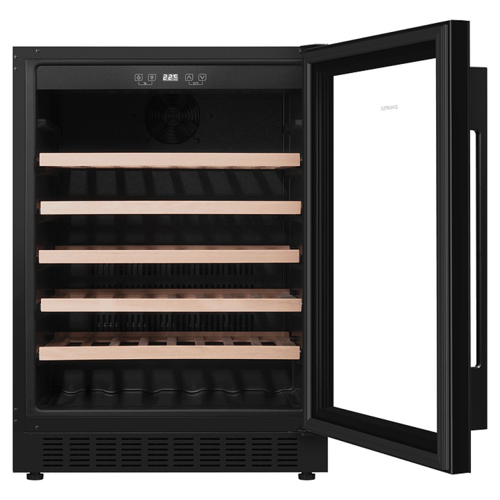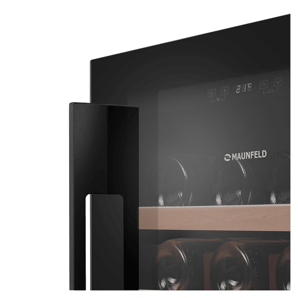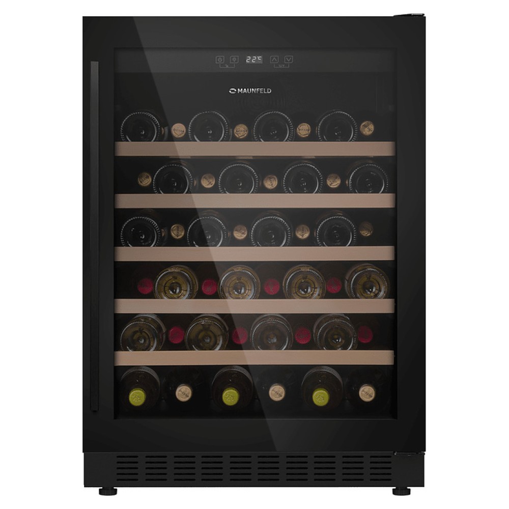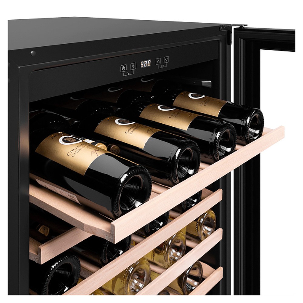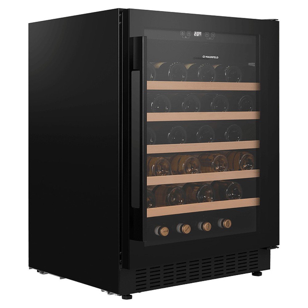Винный шкаф Maunfeld MBWC-135S54 предназначен для хранения при оптимальных условиях и предпродажной демонстрации бутилированного вина различных сортов в барах, ресторанах, специализированных магазинах, подсобных складских помещениях, а также домашних условиях. Модель оснащена холодильной камерой с правосторонней распашной дверью, уплощенной вертикальной рукояткой, расположенной внутри камеры панелью управления с функциональными сенсорными клавишами и светодиодным дисплеем с белой подсветкой индикации. Корпус выполнен из стали с антикоррозийным покрытием черного цвета, дверь с полным фронтальным остеклением без винтового крепежа из прозрачного стекла с дымчатой тонировкой, внутренняя облицовка камеры черного цвета, полки – из массива буковой древесины.