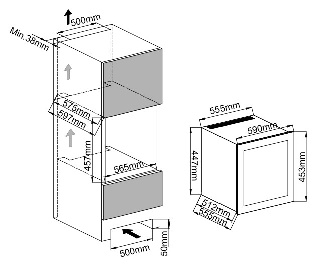 | Высота455 мм | Глубина555 мм | Ширина595 мм |