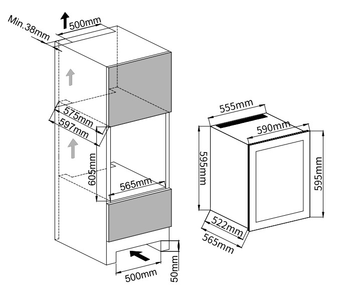 | Высота598 мм | Глубина565 мм | Ширина592 мм |