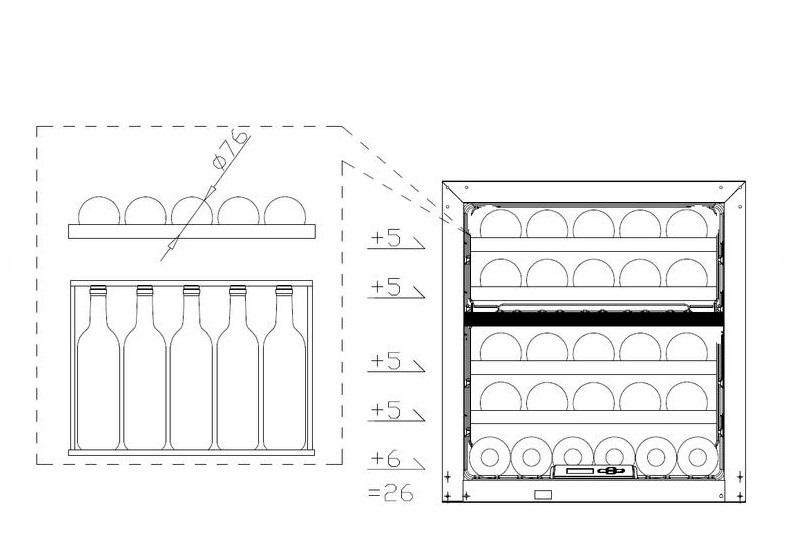 | Вес(С упаковкой)39 кг | Вместимость26 бут. | ВстраиваемыйДа |