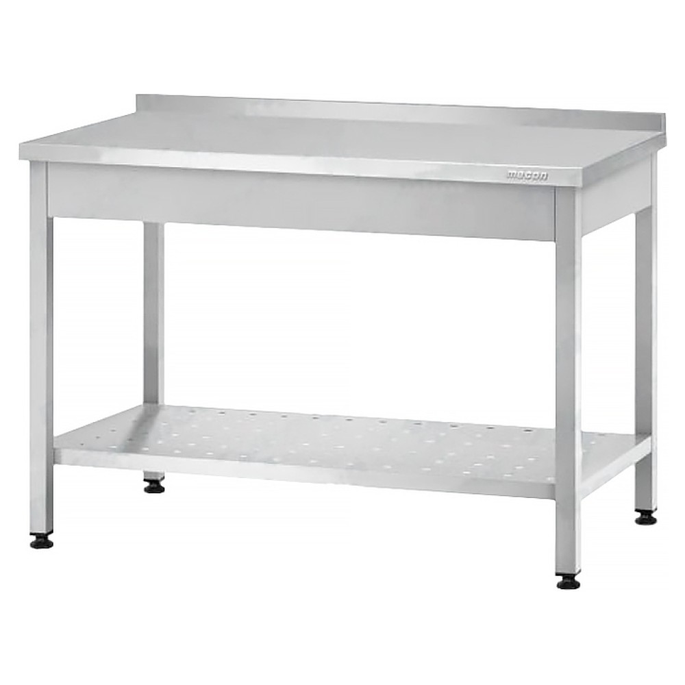 Производственный стол Mecon Profi Inox СПРп предназначен для разделывания и обработки пищевых продуктов, а также в качестве вспомогательной поверхности для кухонного оборудования на предприятиях пищевой промышленности, общественного питания и торговли. Модель имеет разборный каркас с болтовым соединением, оснащена перфорированной полкой и регулируемыми по высоте опорами. Каркас выполнен из профильной трубы 40х40 мм нержавеющей стали, столешница - из пищевой нержавеющей стали AISI 304 с усилением подложкой из ЛДСП, полка и лицевые панели по периметру - из нержавеющей стали.