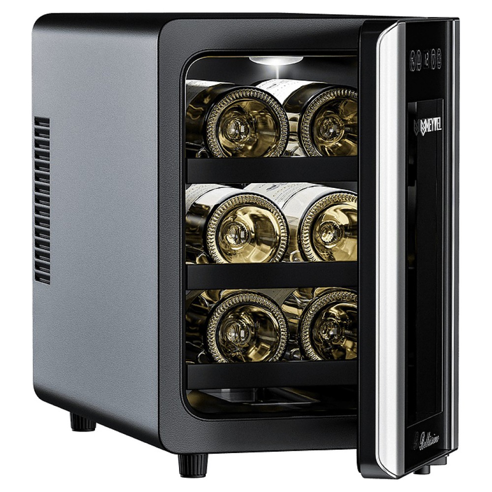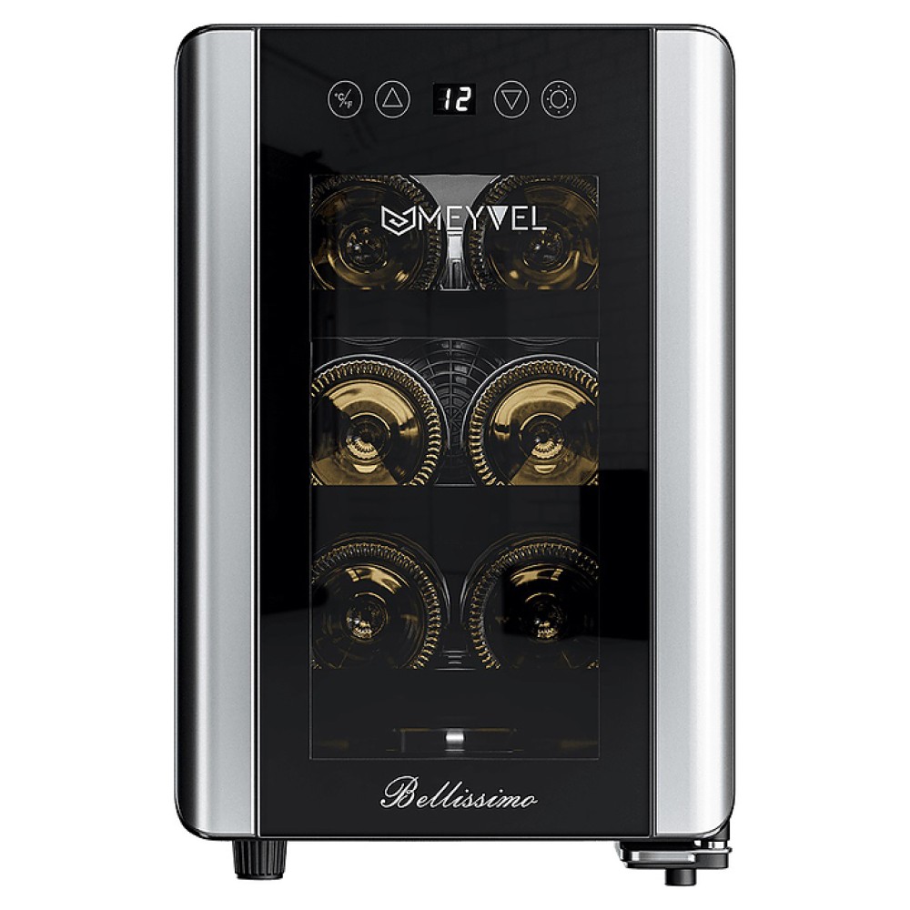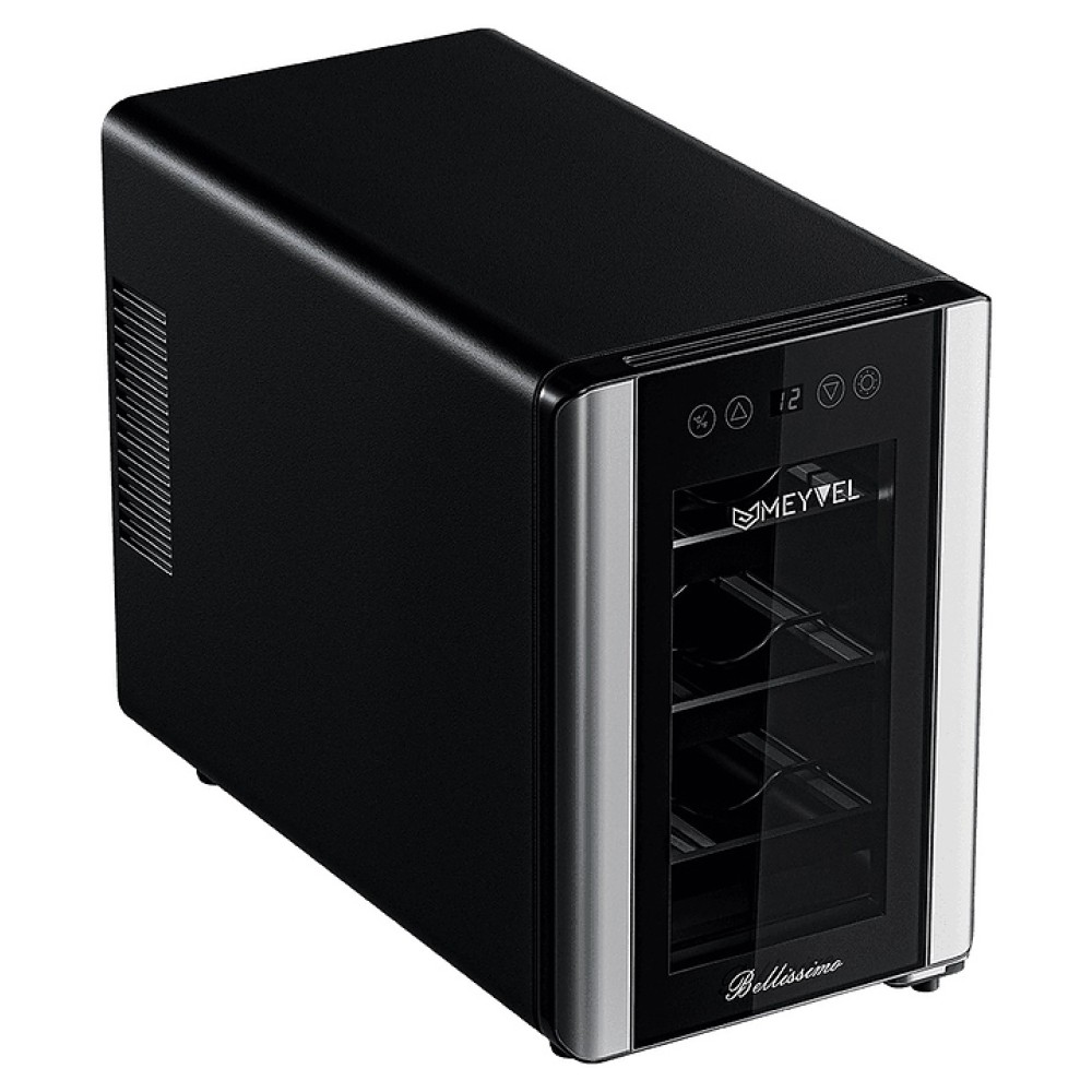 Винный шкаф MEYVEL MV06-BSF1 (easy) предназначен для демонстрации, хранения и создания оптимальных условий для сохранения всех вкусовых свойств вина в бутылках на предприятиях общественного питания, торговли, в барах, ресторанах, специализированных магазинах, частных домах или квартирах. Модель оснащена сенсорной панелью управления, электронным термостатом и светодиодной подсветкой. Корпус выполнен из окрашенной в черный цвет стали, дверь - из двойного стекла с защитой от ультрафиолетовых лучей, полки - из хромированного металла.